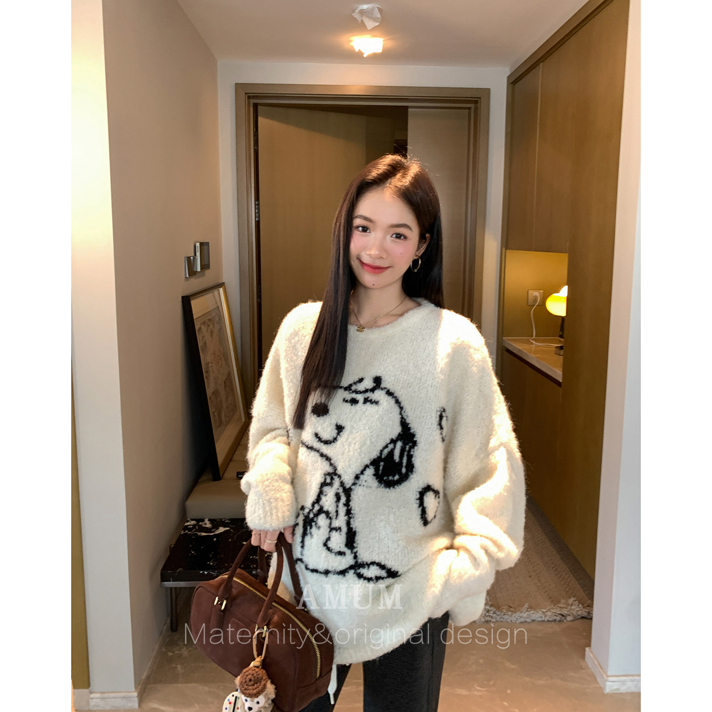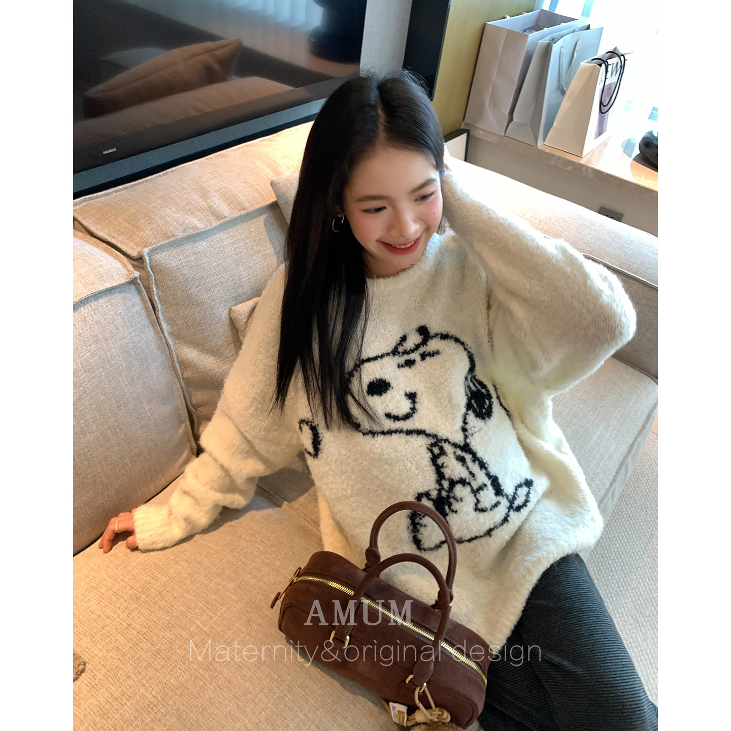淘宝◆AMUM孕妇装◆圈住暖意~圆领圈圈纱慵懒软糯减龄宽松针织上衣