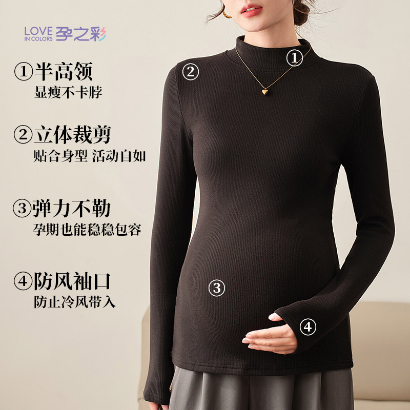 孕之彩孕妇装秋冬纯色保暖半中高领打底衫,专为孕期女性贴心设计。采用高弹针织面料,柔软亲肤、透气保暖,轻松包容不断变化的孕肚,提供舒适无束缚的穿着体验。半中高领设计有效防风御寒,兼顾时尚与实用。简约纯色款式百搭易穿,可轻松搭配外套、连衣裙或单穿,满足日常出行与居家需求。大码剪裁专为孕妈量身定制,从孕早期到产后均能穿着,实用性强。无论是秋冬季节保暖打底,还是作为贴身毛衣,都能让孕妈在特殊时期依然优雅自信,温暖舒适每一天。