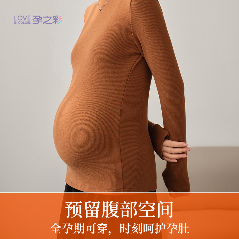 天猫孕之彩孕妇装上衣秋冬纯色保暖半中高领打底衫高弹针织大码毛衣