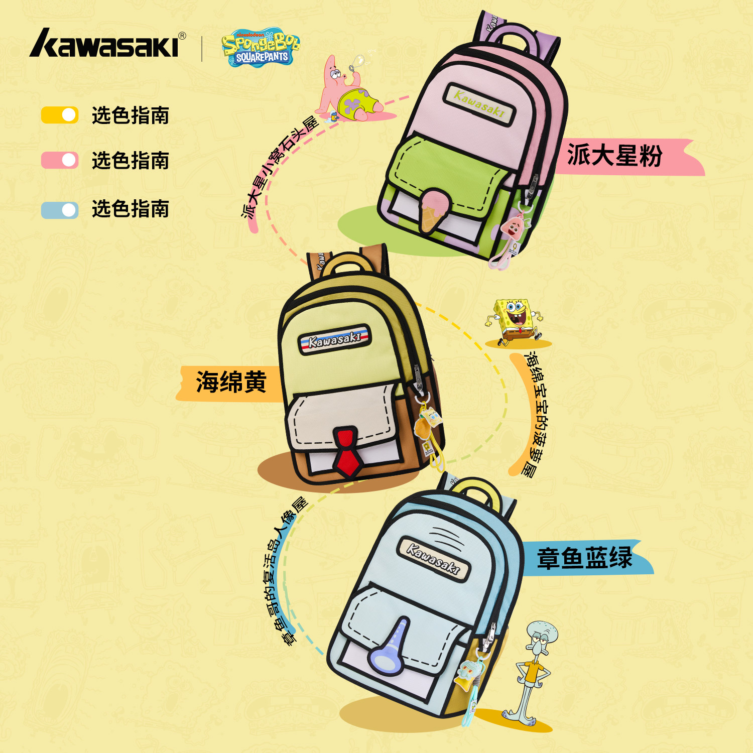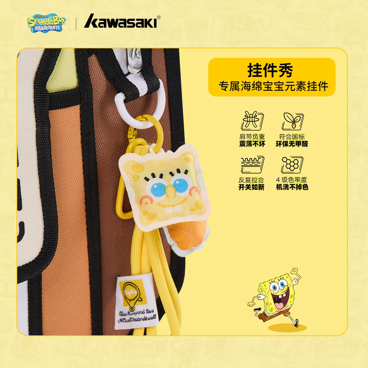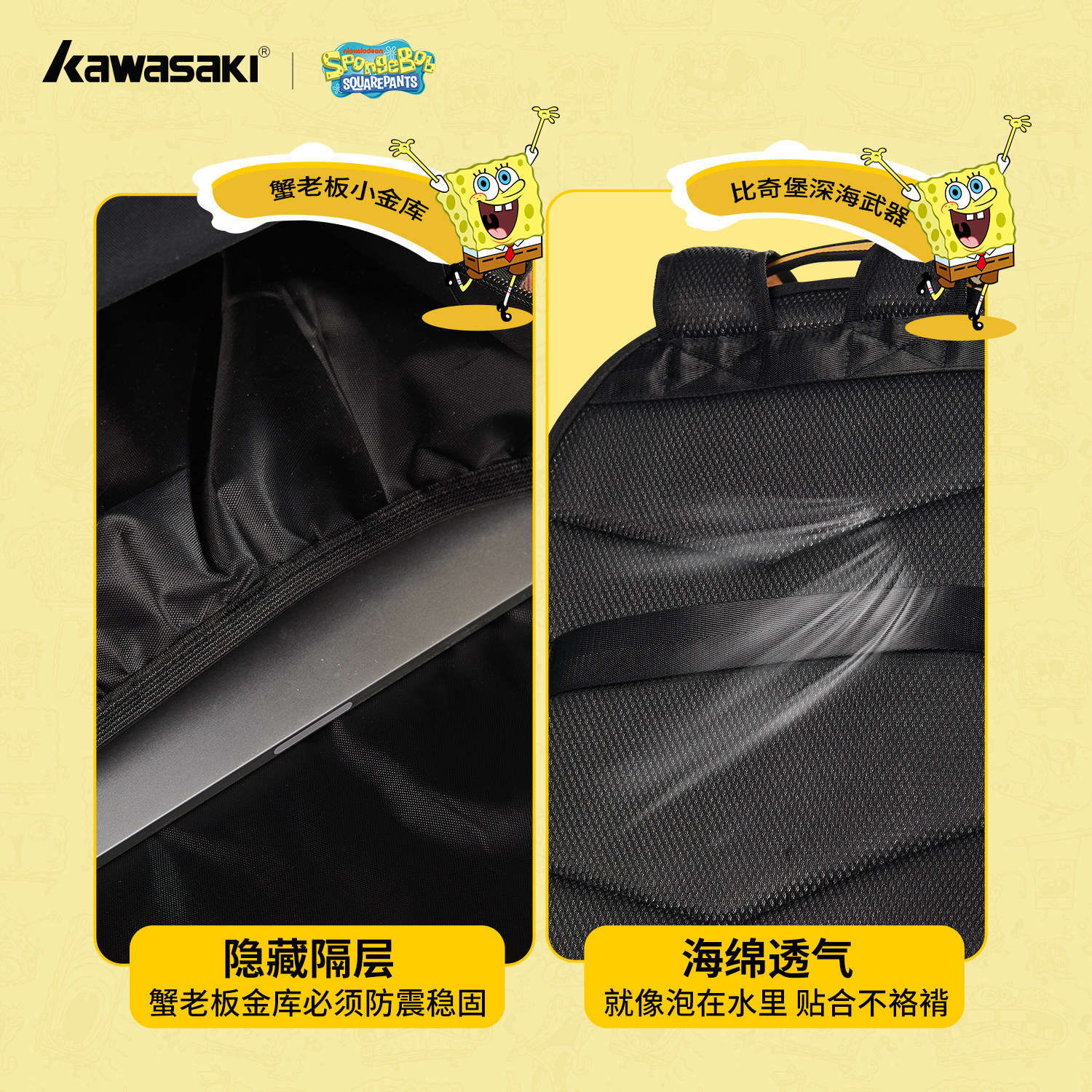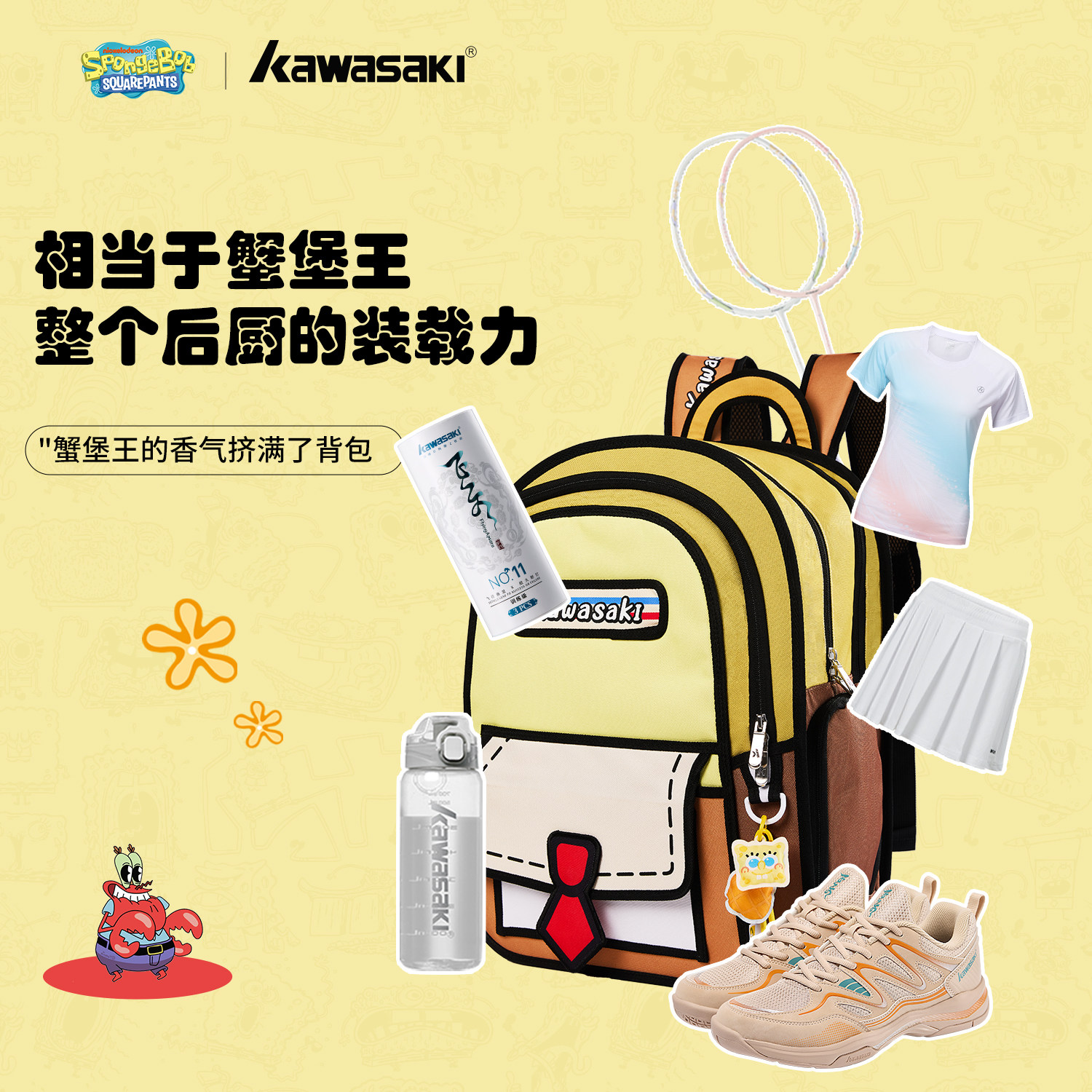 天猫川崎海绵宝宝联名羽毛球包立体漫画风大容量运动双肩背包学生书包