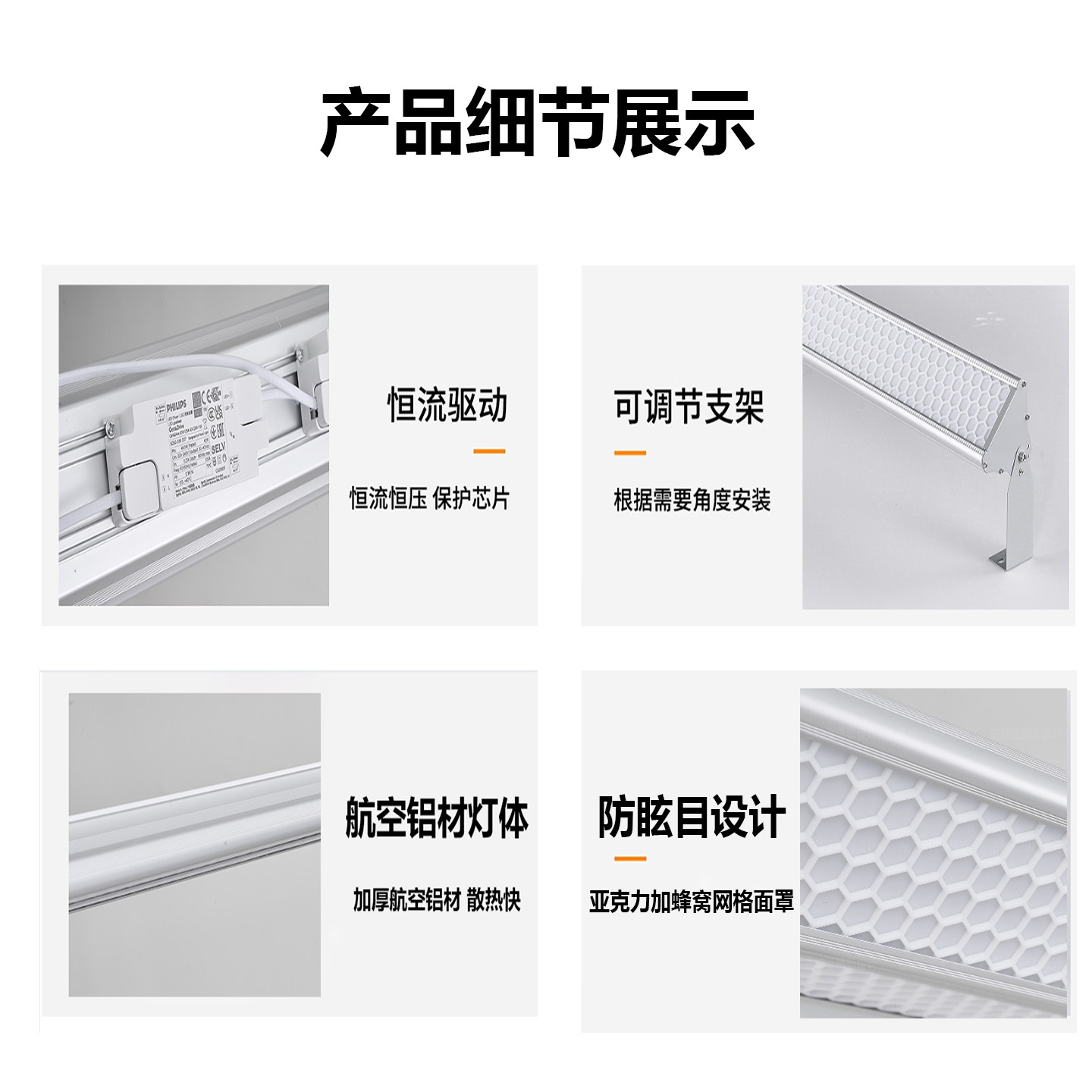 羽毛球馆专用防眩目超亮长条工矿灯,专为高空间照明场景设计,适用于羽毛球馆、厂房、仓库、车间等场所。采用高品质LED光源,光线均匀柔和,显色指数高,有效减少视觉疲劳,避免眩目干扰,保障运动与作业安全。灯体结构坚固耐用,散热性能优异,支持吊装或嵌入式安装,灵活适配不同层高。具备高亮度、低能耗、长寿命等特点,节能效果显著,维护成本低。IP65防护等级,防尘防水,适应复杂工业环境。无论是专业体育场馆还是大型工业空间,这款灯具都能提供稳定、高效的照明解决方案,提升空间使用体验与安全性。