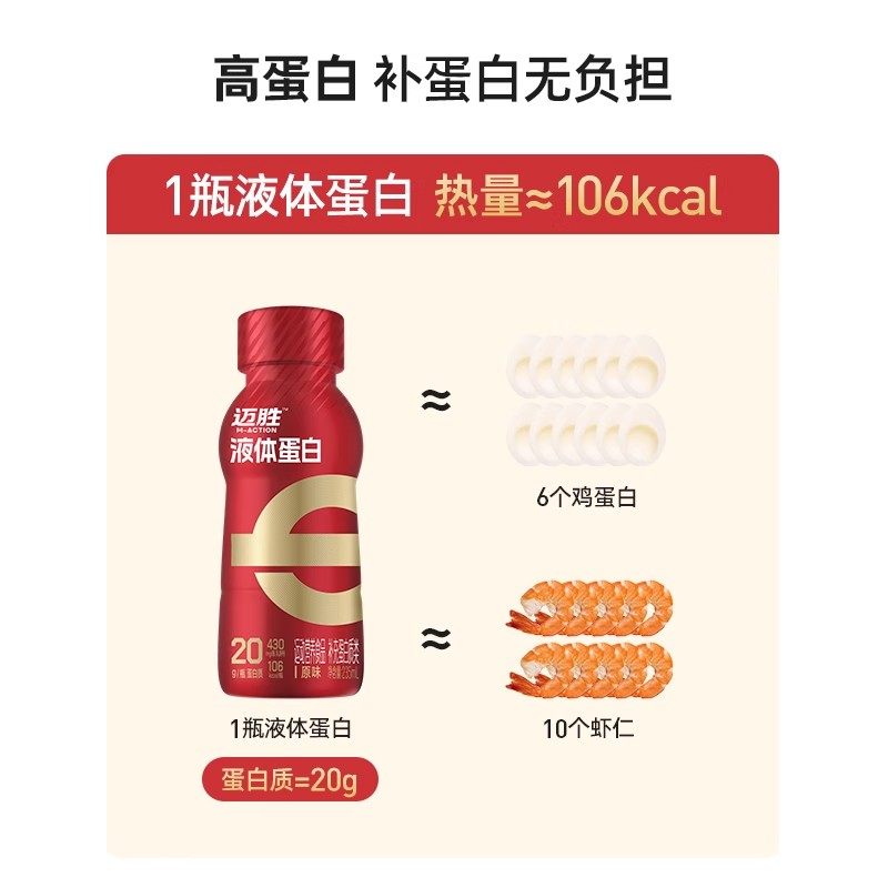 天猫蒙牛迈胜20g液体乳清蛋白质运动训练健身羽毛球补营养蛋白粉补剂