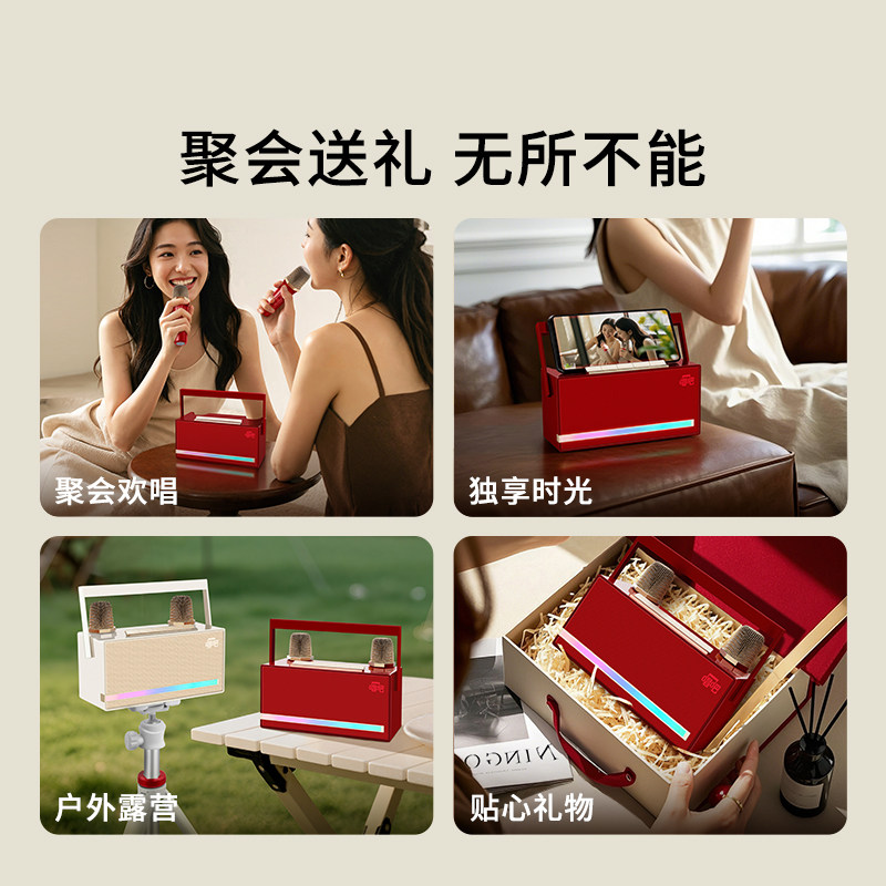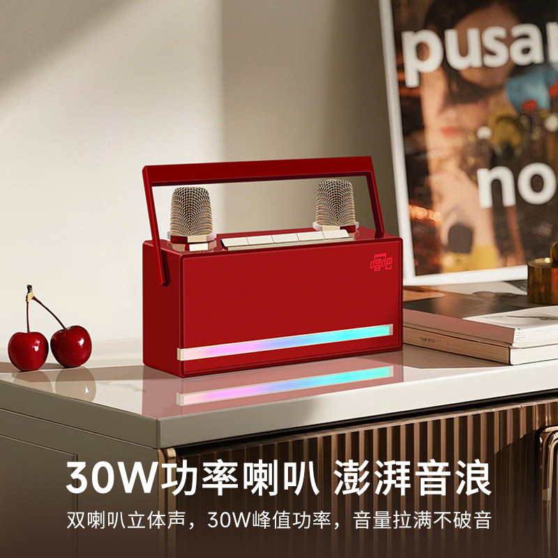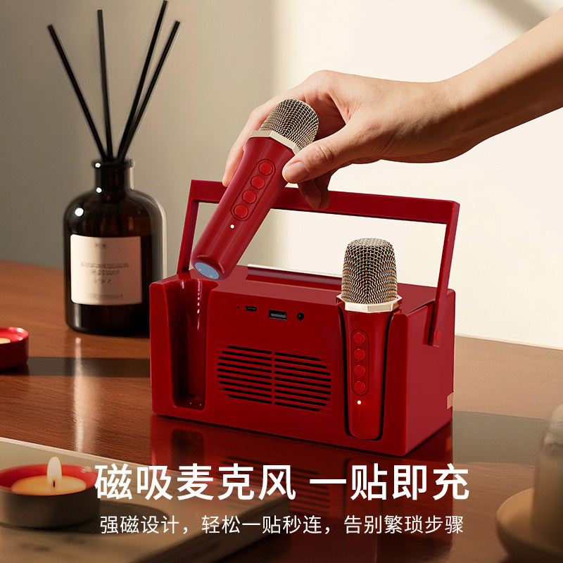 唱吧叮叮巴士迷你k歌音箱精致复古蓝牙音响家庭ktv麦克风户外话筒