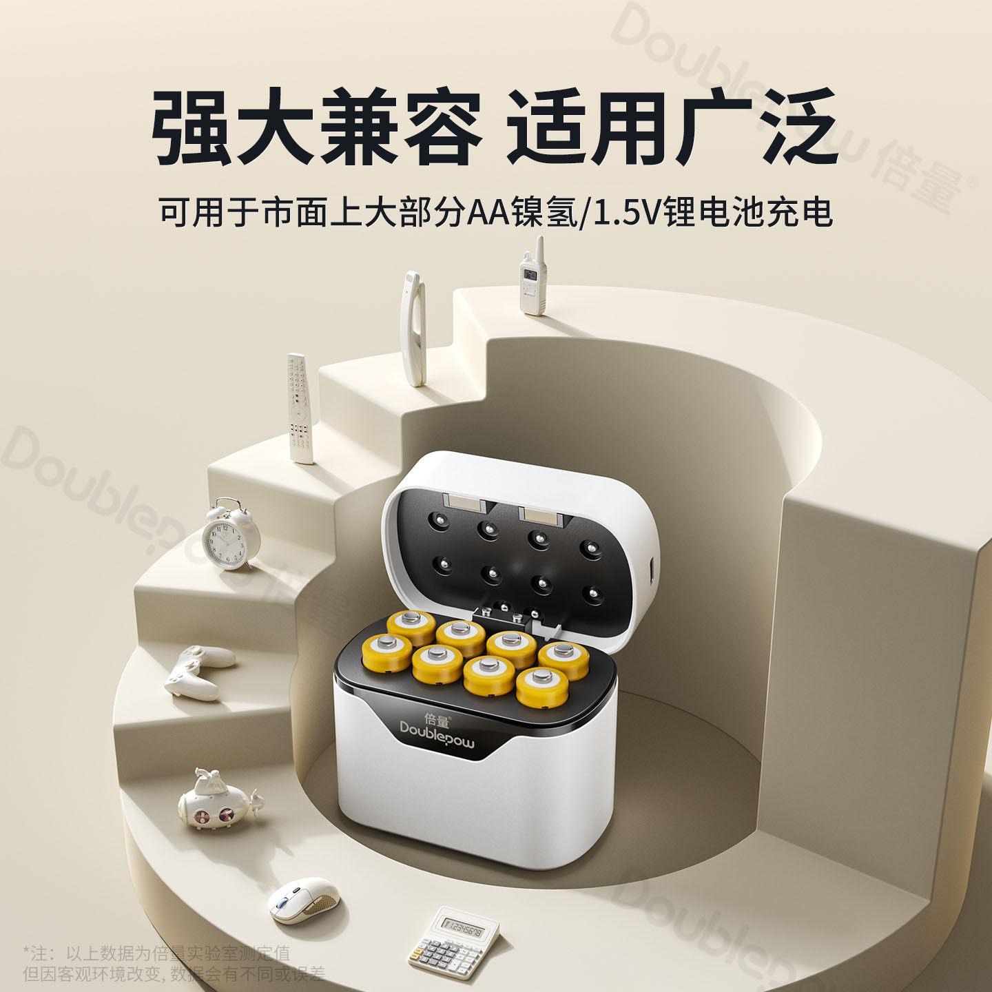 倍量5号大容量充电电池,标称容量高达5800mAh(实际为镍氢电池典型值,常见为2000-2800mAh,此处或为笔误),采用高品质电芯,循环充电可达1200次以上,环保经济。兼容AA规格,广泛适用于玩具、KTV话筒、麦克风、遥控器、手电筒等日常电子设备。配备通用智能充电器,支持多节电池同时充电,具备过充保护、防反接和自动断电功能,安全可靠。电池自放电率低,存放半年仍可保持80%电量,即用即充,方便快捷。倍量品牌专注充电电池研发,品质稳定,是家庭和娱乐场景的理想选择。