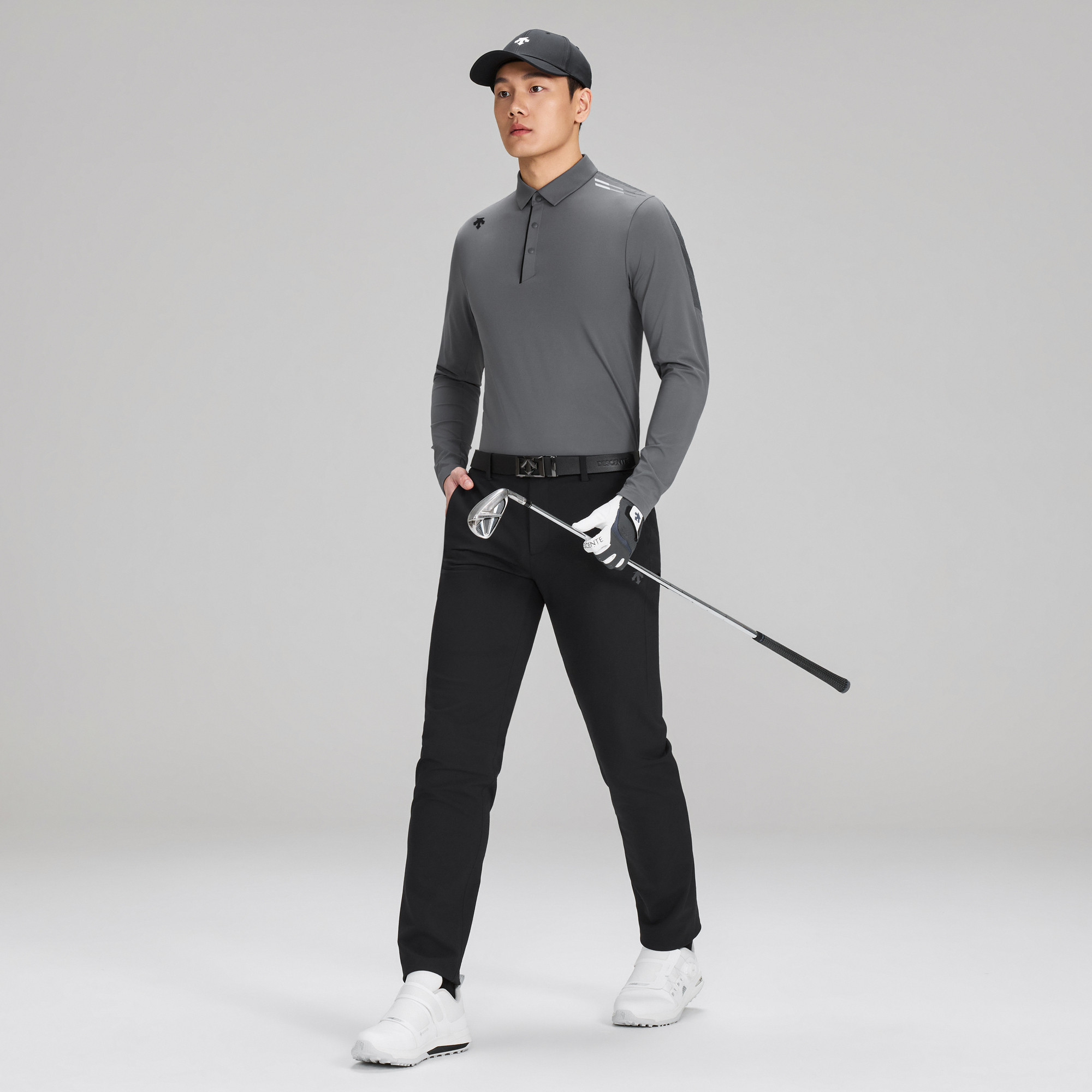 DESCENTE迪桑特高尔夫男士PRO系列长袖POLO衫,专为早春球场设计,融合专业性能与优雅格调。采用高弹速干面料,具备卓越透气性与排汗功能,确保运动时干爽舒适。立体剪裁贴合身形,兼顾活动自由度与修身轮廓,彰显精英气质。经典翻领搭配三粒扣门襟,细节精致,可轻松应对球场与日常场合。左胸品牌标识低调醒目,彰显品质身份。防风袖口与微弹下摆增强实用性,适应早春多变气候。无论是挥杆竞技还是休闲出行,这款POLO衫都以科技面料与匠心工艺,诠释现代高尔夫男士的从容风范。