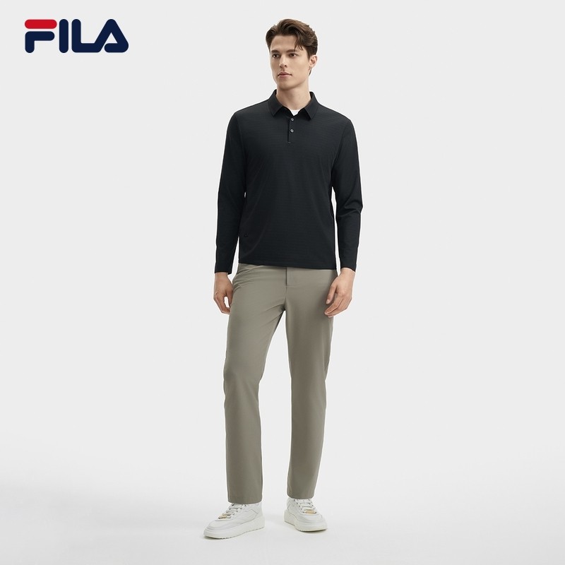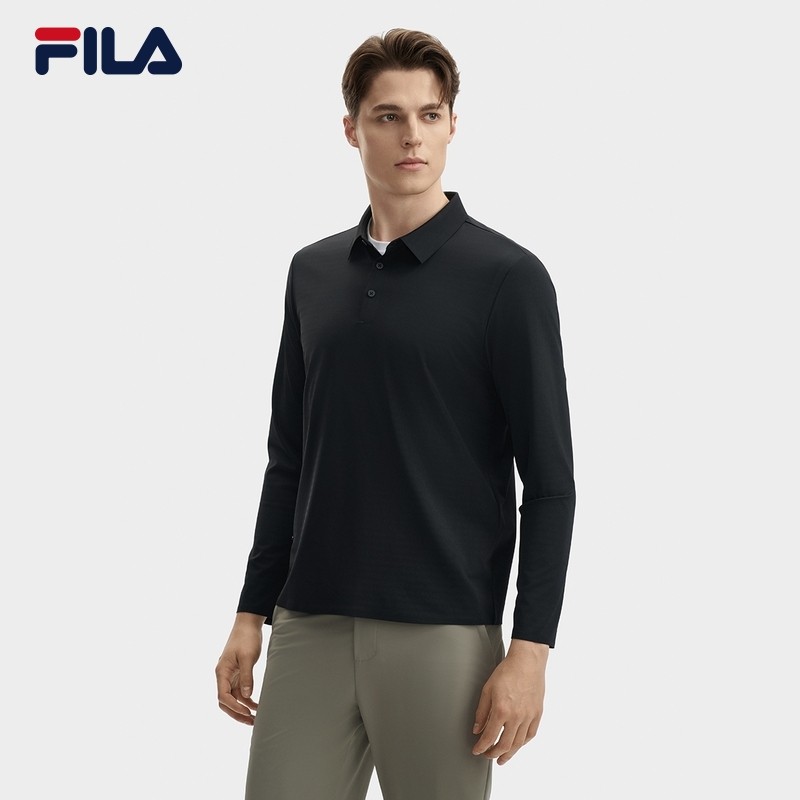 天FILA 斐乐官方男子针织长袖POLO衫2025春季新款网球运动基础上衣