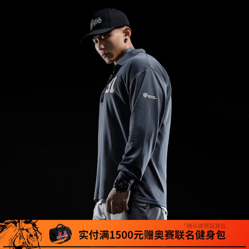 天猫Monster Guardians 男子美式复古双色运动长袖轻薄休闲篮球polo衫