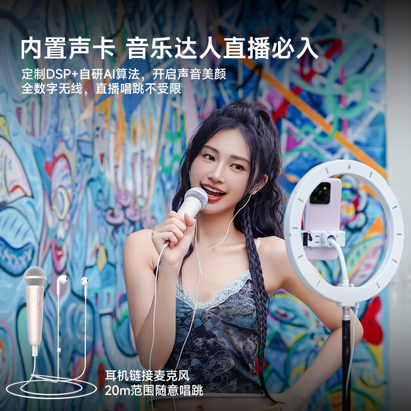 天猫纯麦无线麦克风手机全民K歌话筒直播声卡录音设备家庭用ktv小甜筒