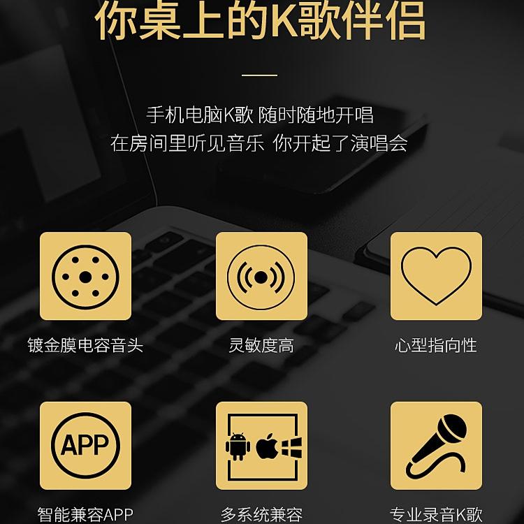 天猫得胜PC-K600电容麦克风手机电脑直播K歌声卡录音话筒直播设备全套