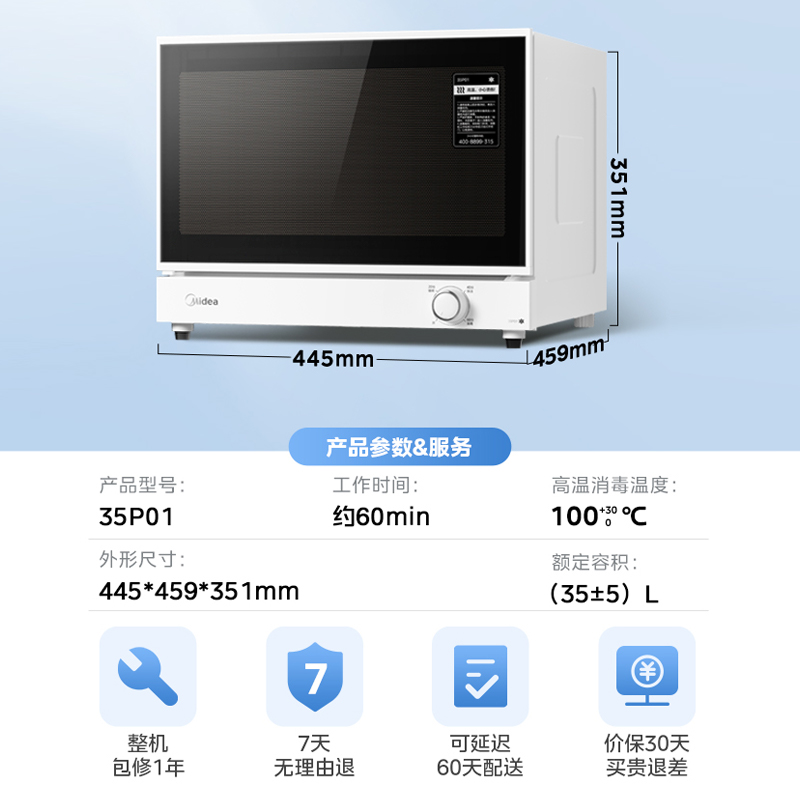 天猫美的消毒柜家用台式小型碗柜免安装一星级消毒高温烘消灭菌35P01
