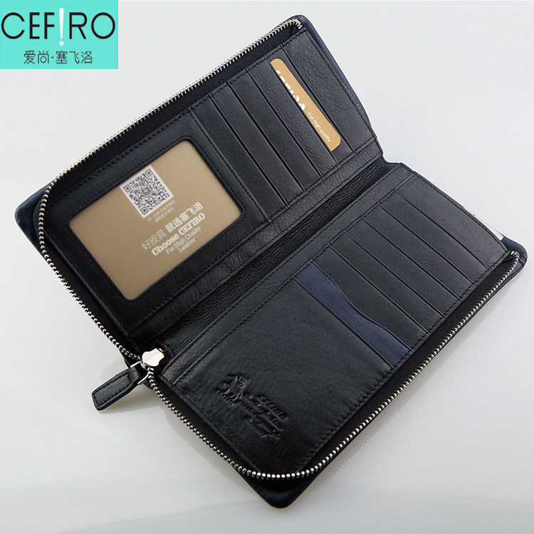 淘宝塞飞洛头层牛皮男钱包真皮长款钱夹青年拉链票夹中年短款银包包邮