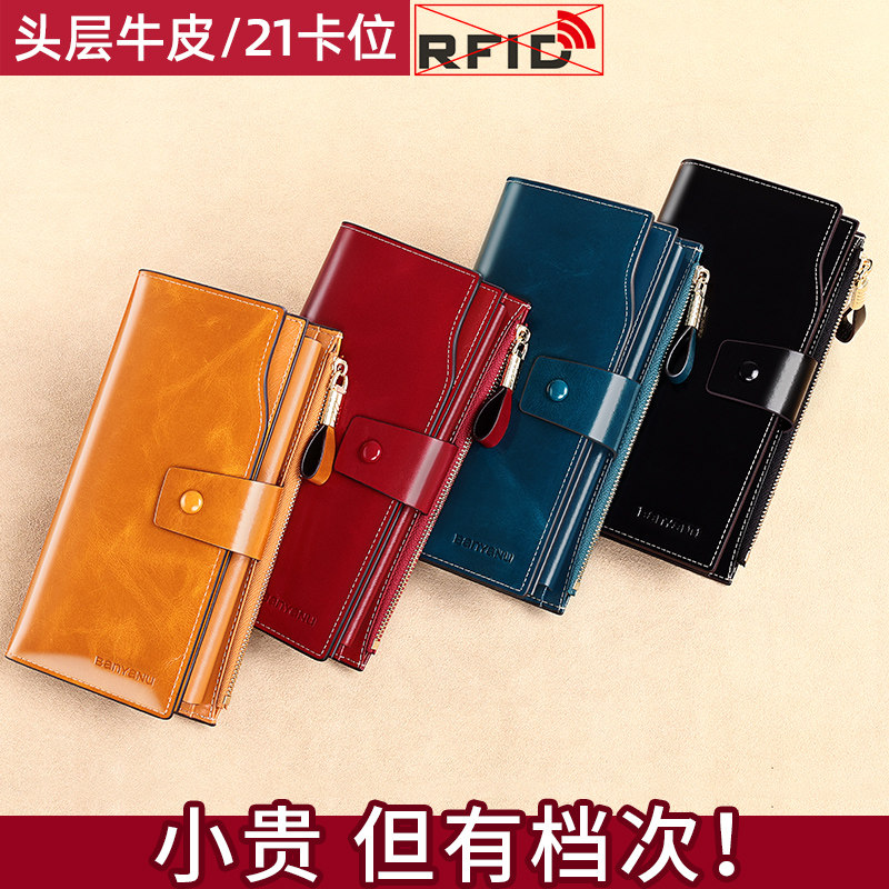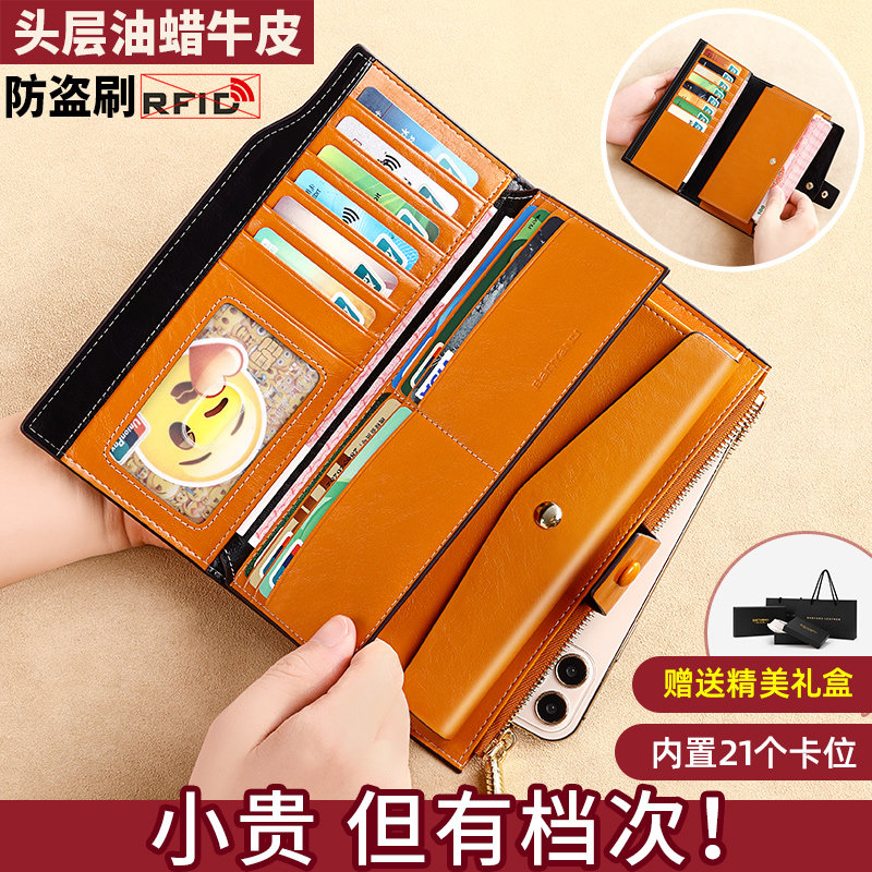 2026年新款钱包女士长款真皮钱夹,精选优质头层牛皮打造,质感细腻,耐磨耐用,彰显高级复古格调。简约大气的设计融合实用功能,内设多个卡位、零钱袋和宽敞主仓,轻松容纳银行卡、身份证、现金及票据,满足日常收纳需求。流畅线条与精致缝线工艺相得益彰,开合顺滑,细节考究。无论是通勤、旅行还是日常出行,都能轻松驾驭,是兼具美观与实用性的理想选择。复古色调百搭各类风格,展现女性优雅气质,是馈赠自用两相宜的精品皮夹。