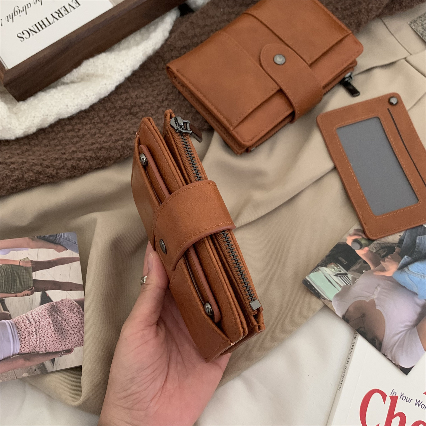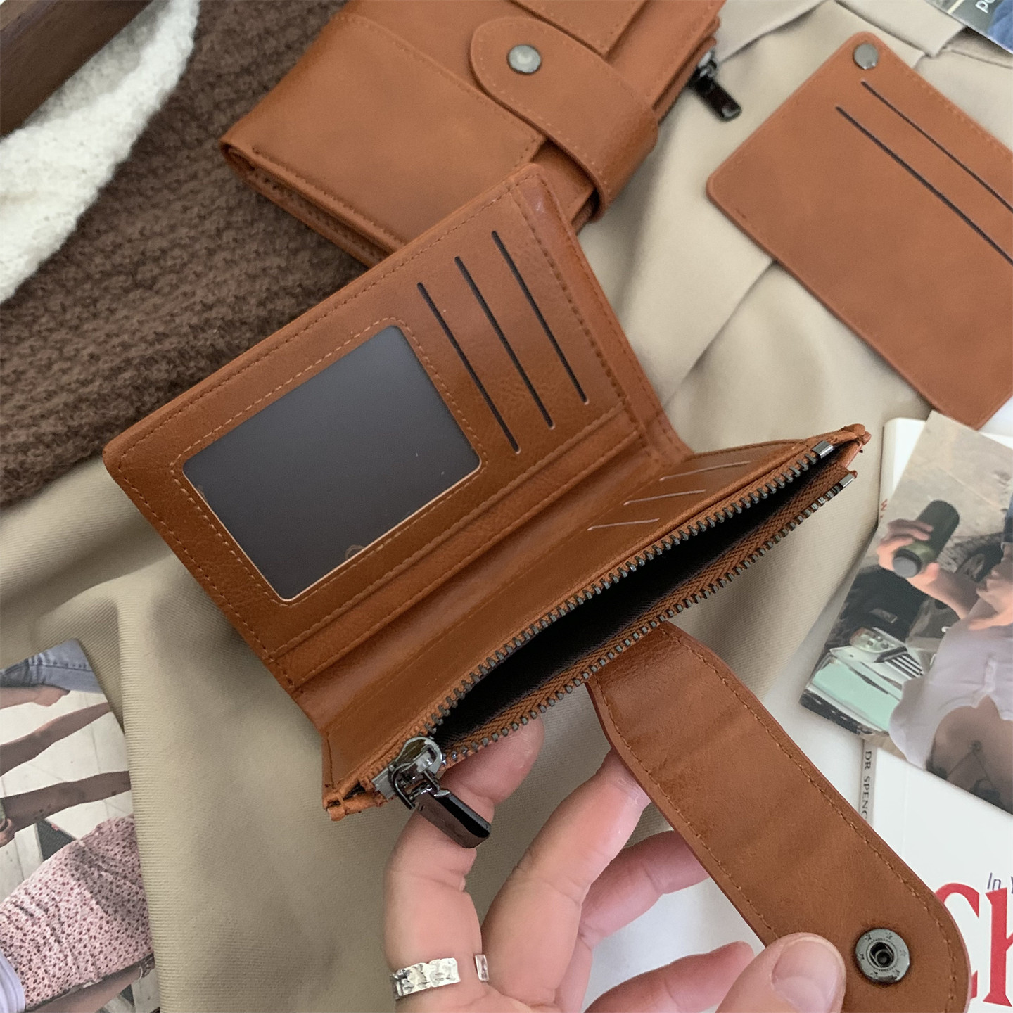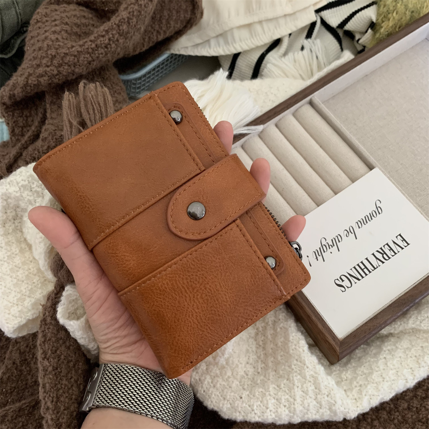 淘宝复古腔调|高级感棕色钱包短款两折多用卡包证件拉链零钱夹子男女