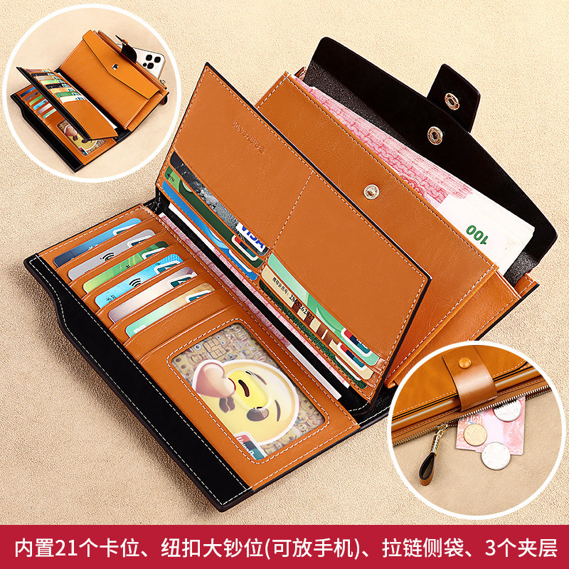 淘宝新长款女士钱包夹头层真皮手拿防盗刷多卡位大容量高档油蜡正品牌