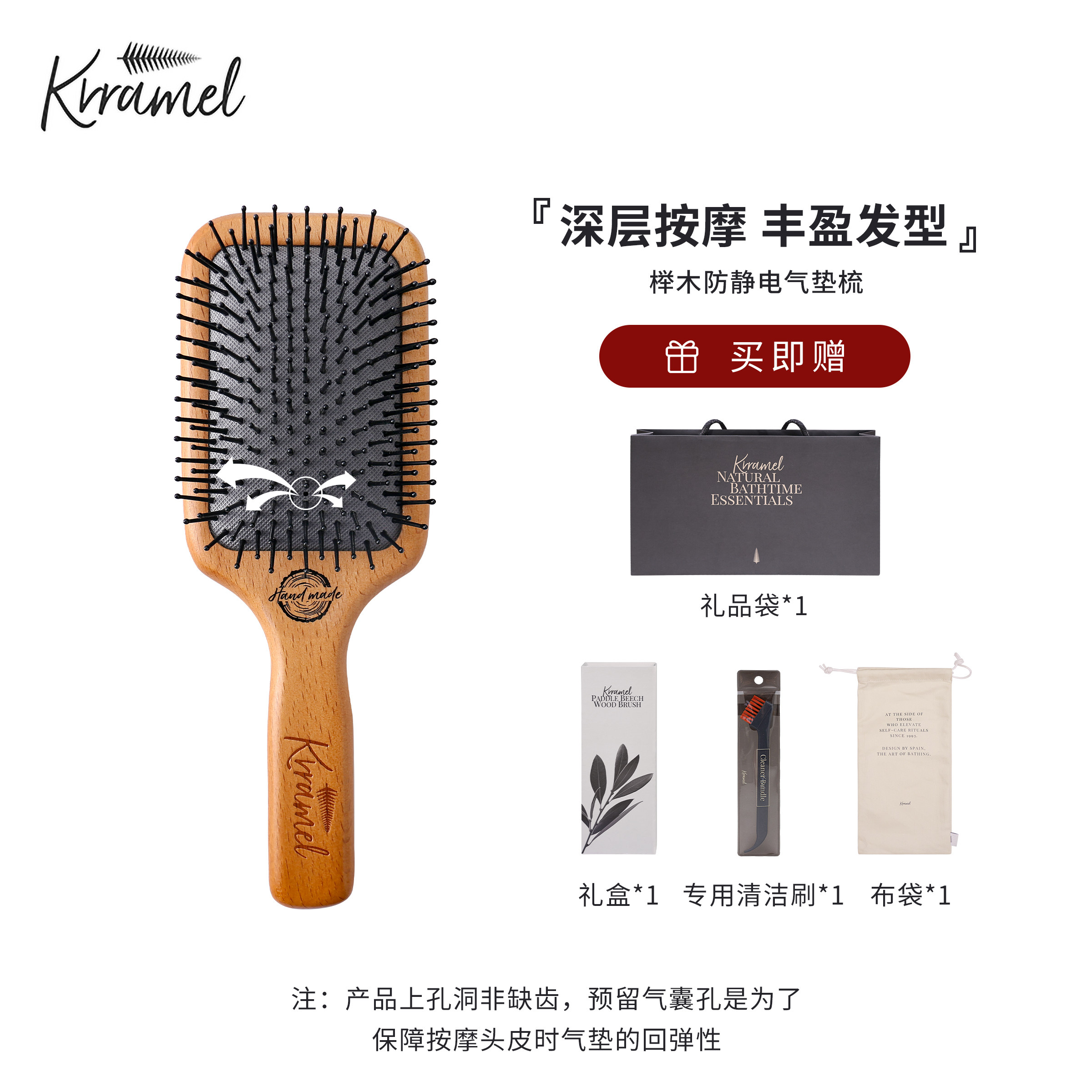 天猫KRRAMEL美国气囊气垫梳按摩梳子蓬松气囊梳木梳子礼盒生日礼物女