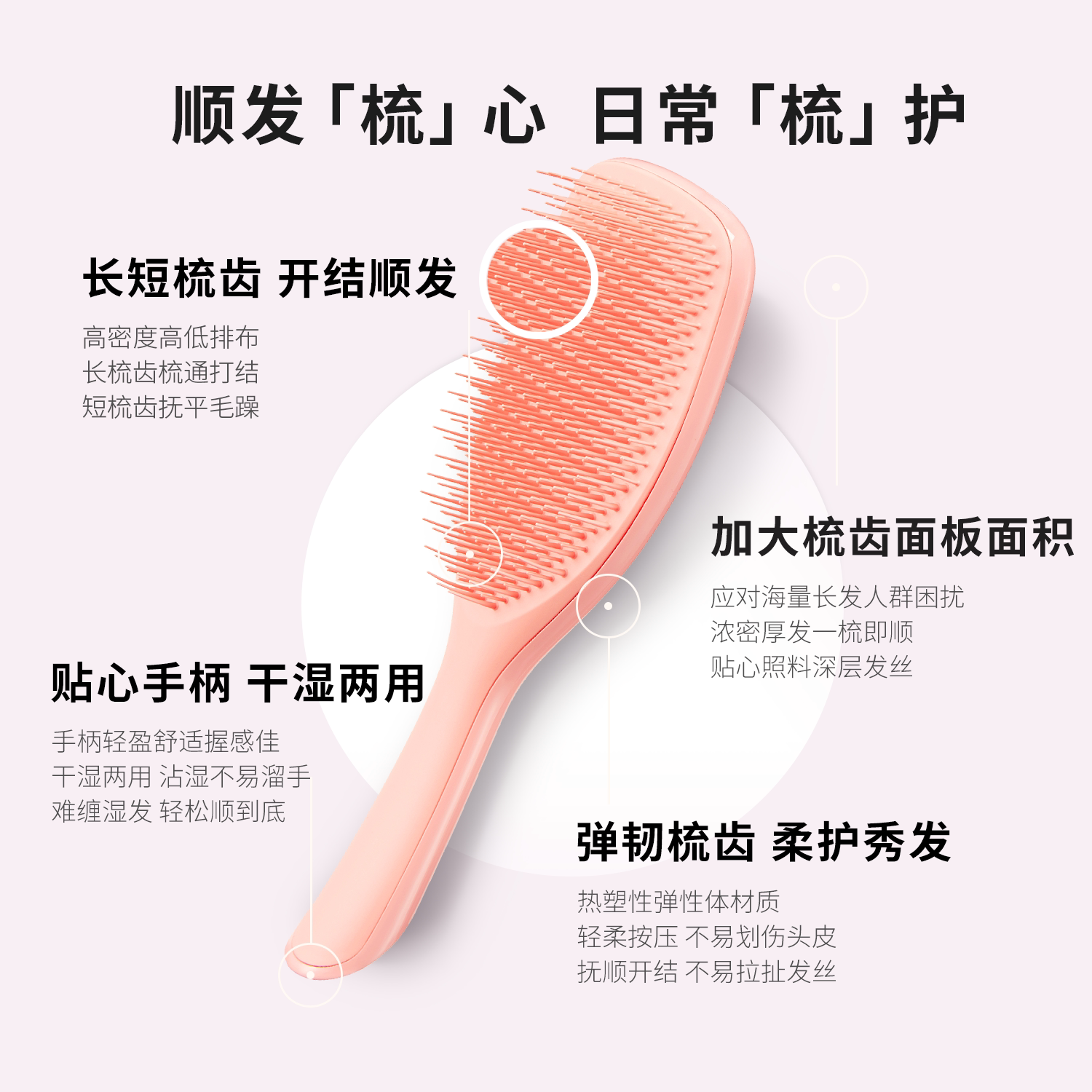 【百亿补贴】TangleTeezer英国TT梳——风靡全球的顺发神器!这款蓬蓬梳专为打结、毛躁发质设计,采用专利齿梳结构,轻松一梳到底,减少断发与拉扯,洗头后使用更顺滑。独特按摩梳齿还能舒缓头皮,促进血液循环,带来SPA级护理体验。轻巧便携,造型时尚,是日常护发与旅行出行的理想选择。无论是长发、短发、直发或卷发,都能轻松驾驭。作为热门伴手礼,TangleTeezer兼具实用与颜值,深受明星与美妆博主推荐。现在参与百亿补贴活动,超值优惠,入手正当时!呵护秀发,从一把好梳开始。