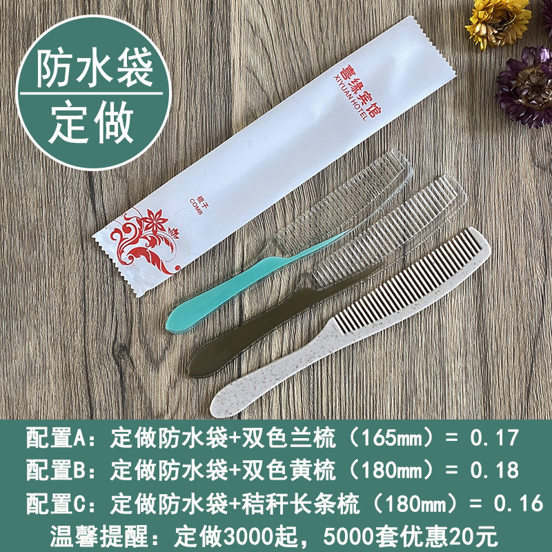 淘宝酒店用品梳子定制宾馆一次性洗漱塑料梳长条双色梳客房头梳木梳