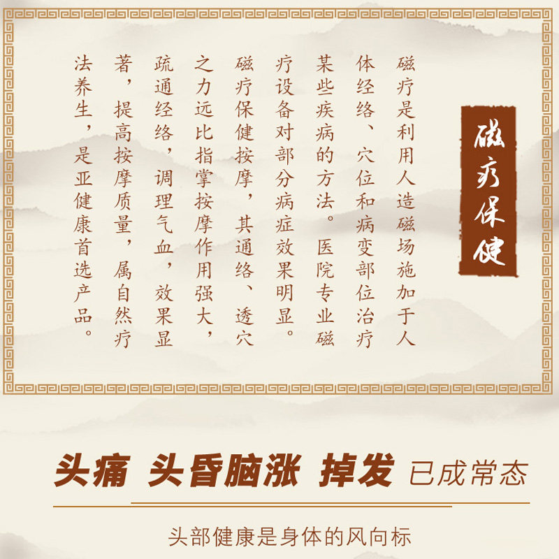杜兴华磁疗梳是一款融合传统中医经络理论与现代磁疗科技的高档养生梳子。精选优质材质,内置高磁能磁石,梳齿圆润贴合头皮,使用时可产生温和磁力,促进头部血液循环,疏通经络,缓解疲劳,有效辅助防脱发、改善睡眠。搭配经络拍打设计,增强按摩效果,长期使用有助于头皮健康与毛发养护。东升伟业匠心打造,工艺精湛,包装典雅,既是自用养生的佳品,也是馈赠亲友的高档礼品。适合注重健康与生活品质的人群,让日常梳头成为一次舒心的养生体验。