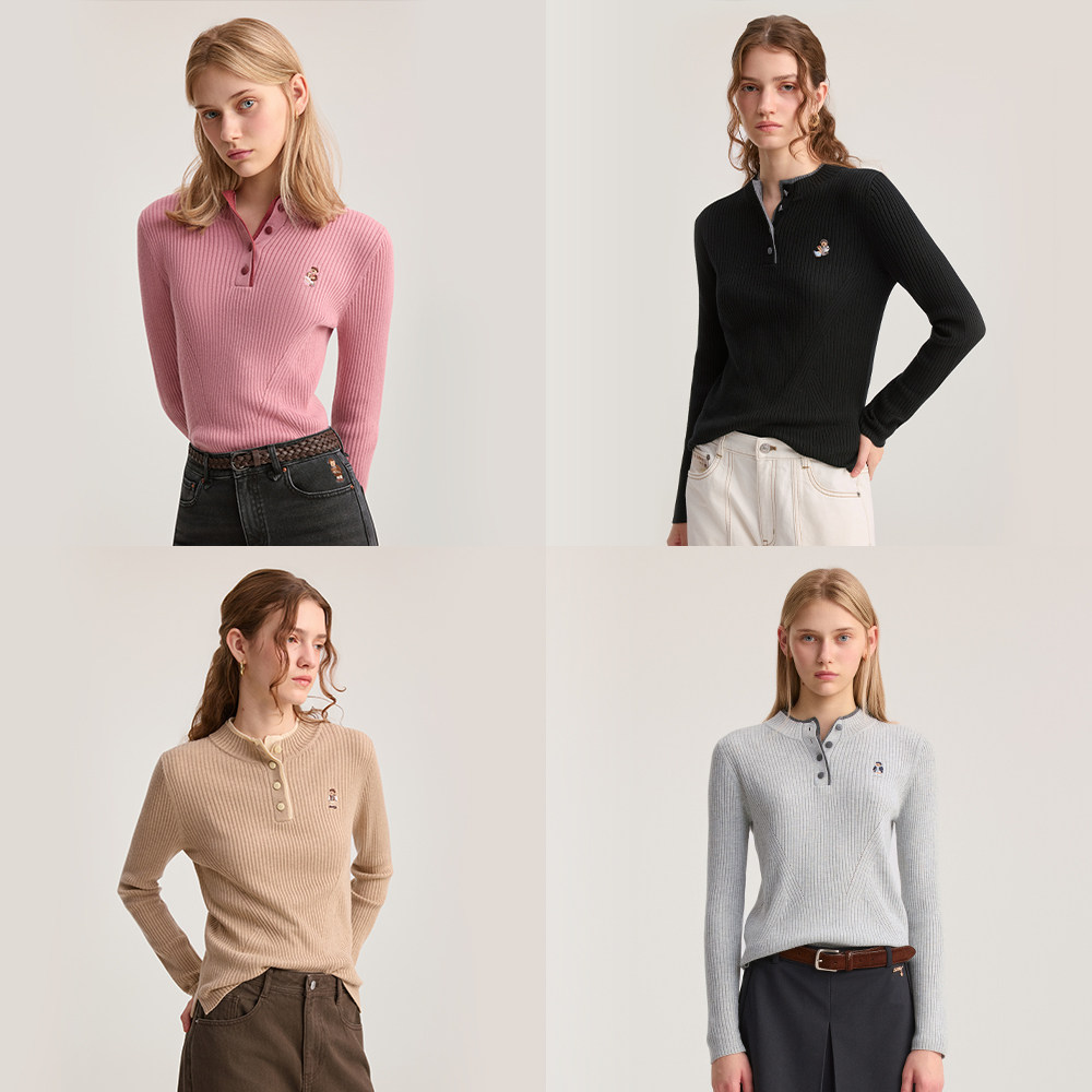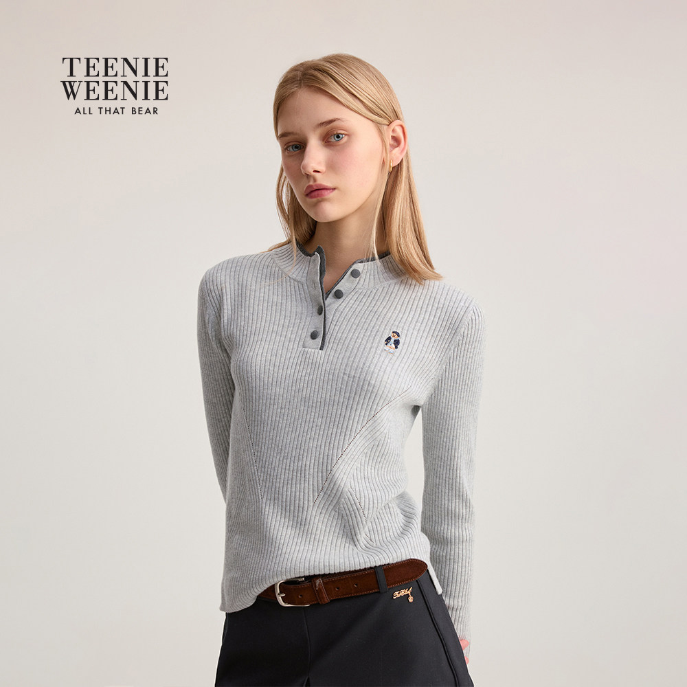 天猫TeenieWeenie小熊女装毛针织衫冬装休闲撞色复古亨利领套头毛衣