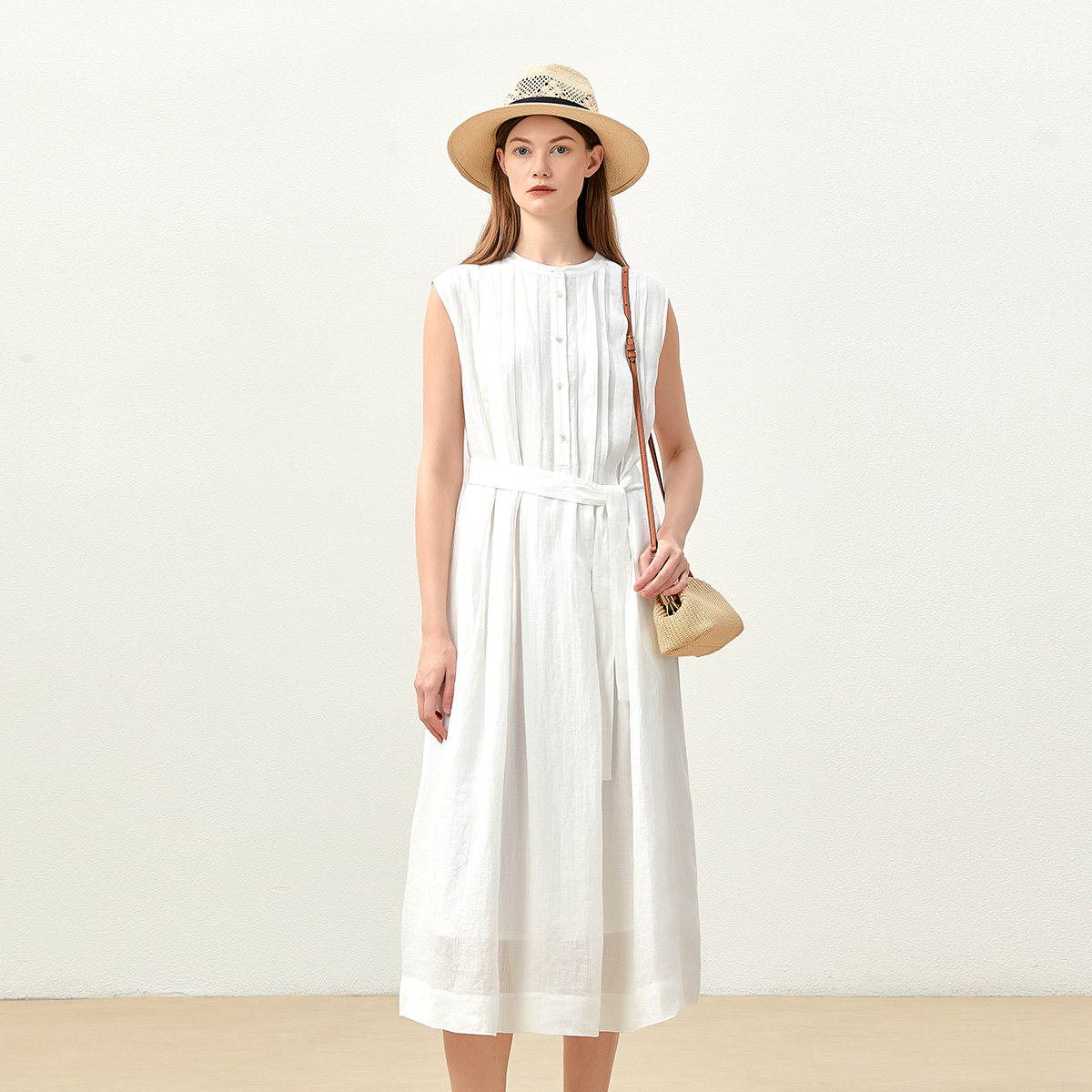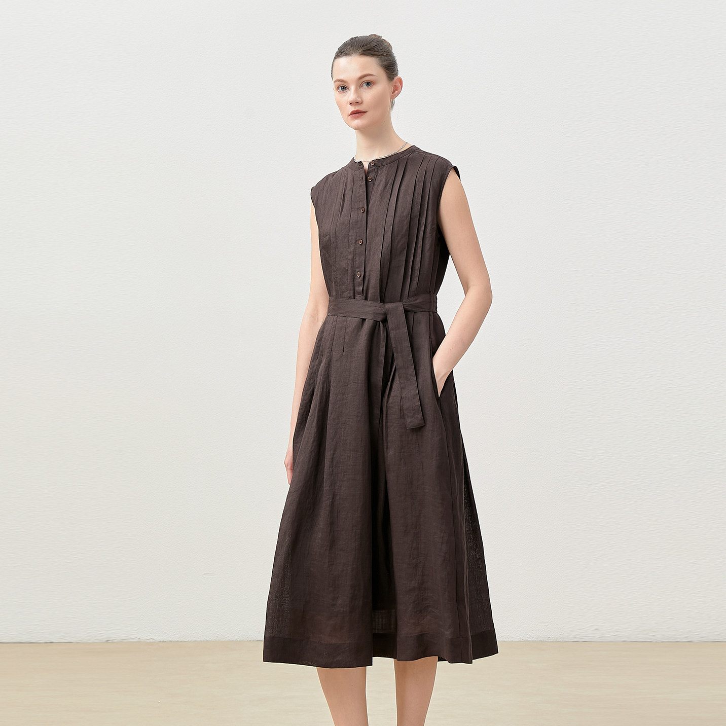 淘宝*WLQ08050 茉莉雅集 I*C仙灵飘逸纯粹全苎麻塔克褶连衣裙/衬衫女