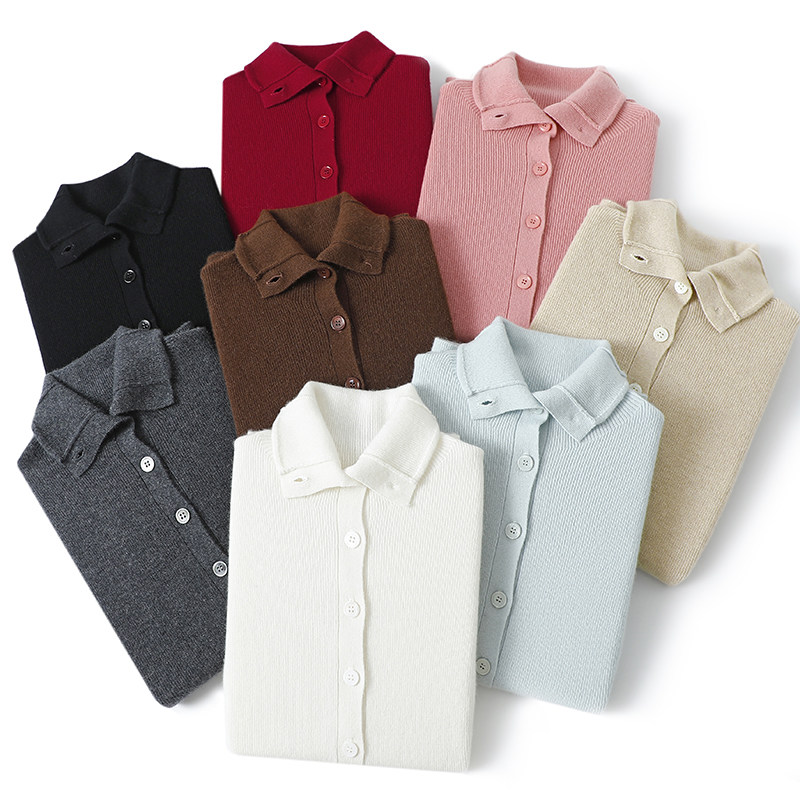 淘康赛妮~新款100纯山羊绒衫女polo领宽松慵懒风针织打底衫毛衣内搭
