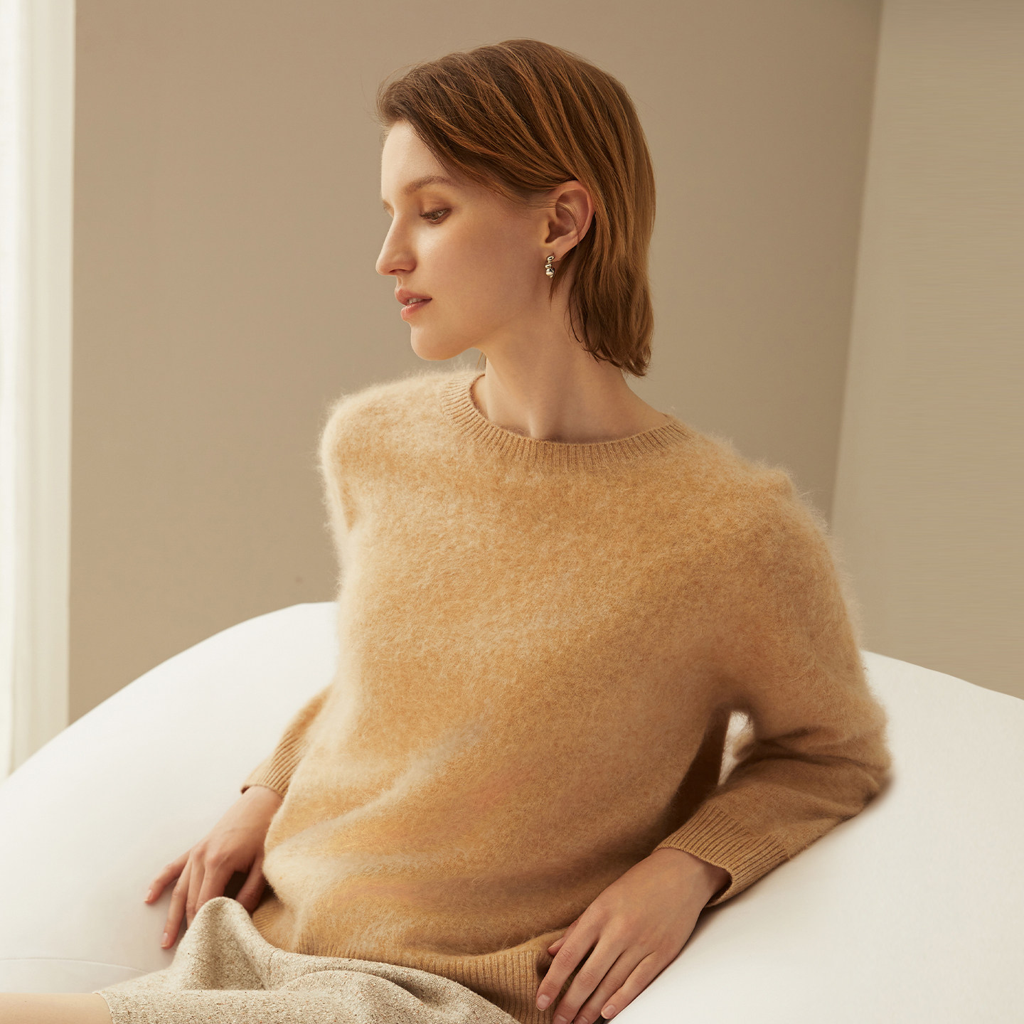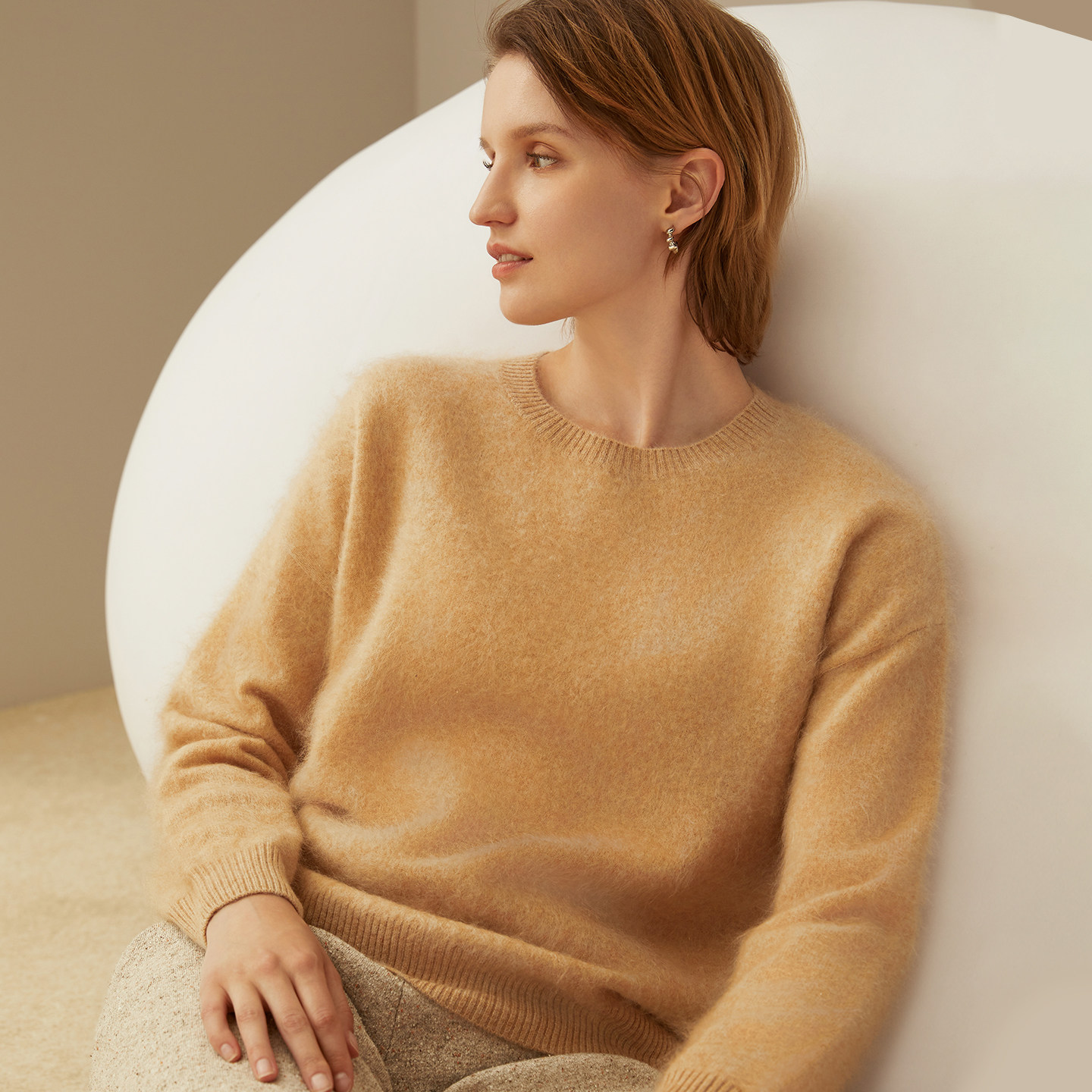 鹿王纯山羊绒衫女士圆领拉绒厚款保暖百搭简约针织套衫,精选优质山羊绒面料,触感柔滑细腻,保暖性极佳。采用经典圆领设计,简约大方,贴合颈部线条,舒适不束缚。拉绒工艺提升柔软度与保暖效果,厚实质感适合秋冬穿着。版型宽松百搭,可单穿亦可内搭,轻松搭配大衣、风衣或外套。无论是通勤、休闲还是居家,皆能展现优雅气质。鹿王品牌匠心打造,注重细节与品质,是秋冬衣橱不可或缺的温暖之选。轻盈保暖,亲肤透气,为您带来全天候舒适体验。