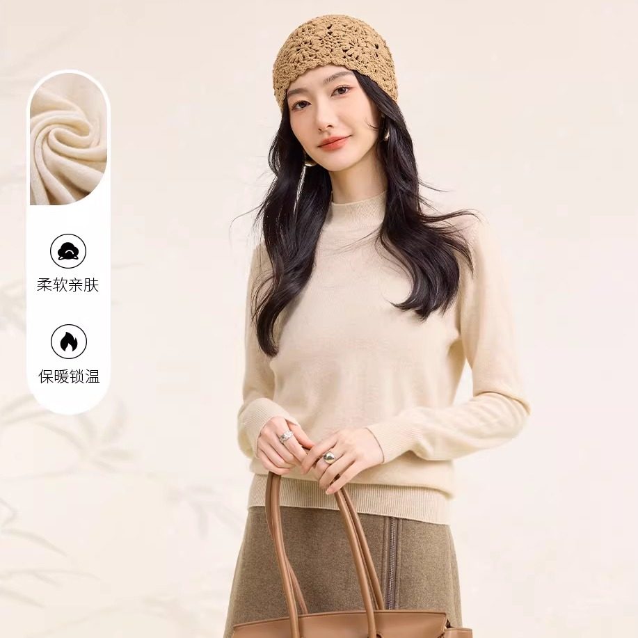 东黎小山羊绒 女士秋冬半高领羊绒针织衫打底百搭通勤时尚21C202