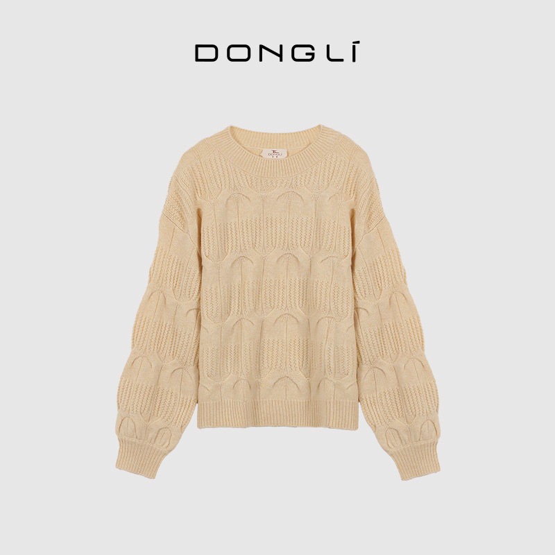 天猫东黎山羊绒 女士秋冬季针织圆领重工绞花套头羊绒衫厚款毛衣21S44