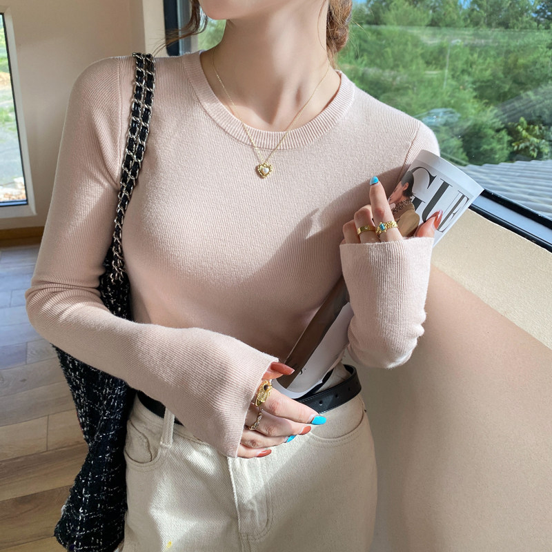 淘白色圆领小香风针织打底衫女内搭2026春秋季新款修身毛衣长袖上衣