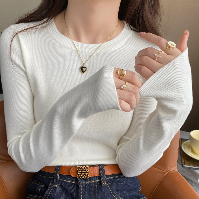 白色圆领小香风针织打底衫女内搭2026春秋季新款修身毛衣长袖上衣