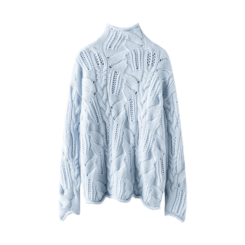 淘宝素年锦时!100%纯山羊绒衫女镂空秋冬半高领时尚纯色针织衫