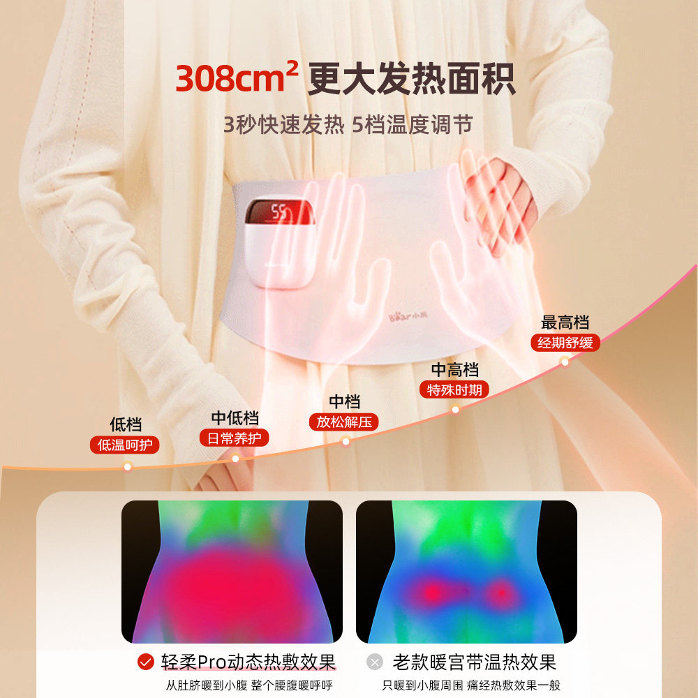 天猫小熊暖宫腰带热敷腰部缓解痛经大姨妈暖肚子神器暖腰带送女生礼物