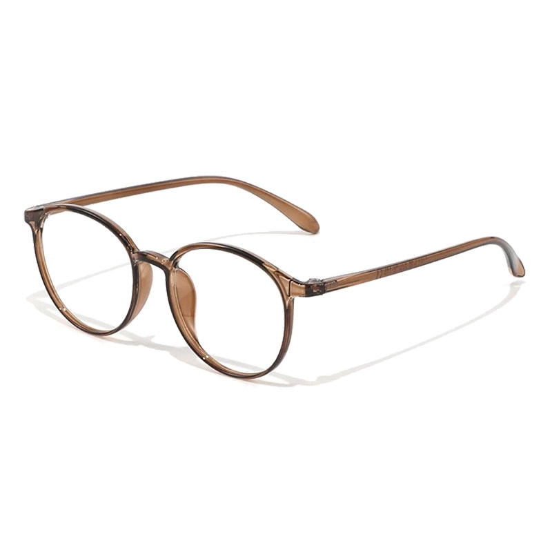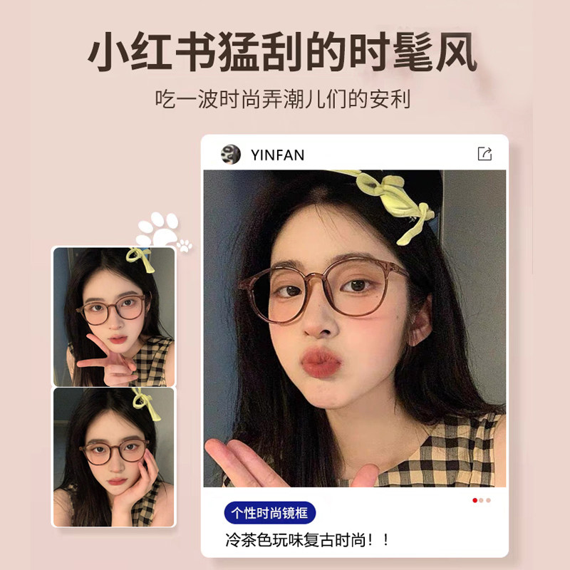 天猫冷茶色圆框素颜眼镜近视女度数可配高级感方圆脸超轻韩系眼镜框架