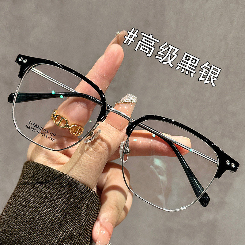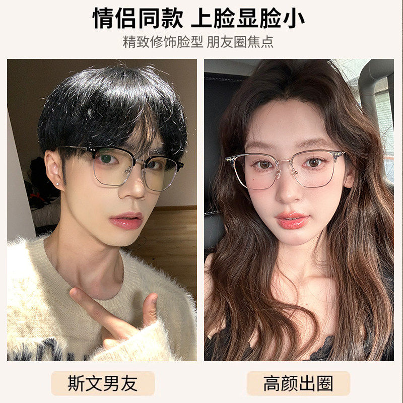 天猫超轻防蓝光半框眼镜女近视可配有度数男大框镜架显瘦圆脸显脸小