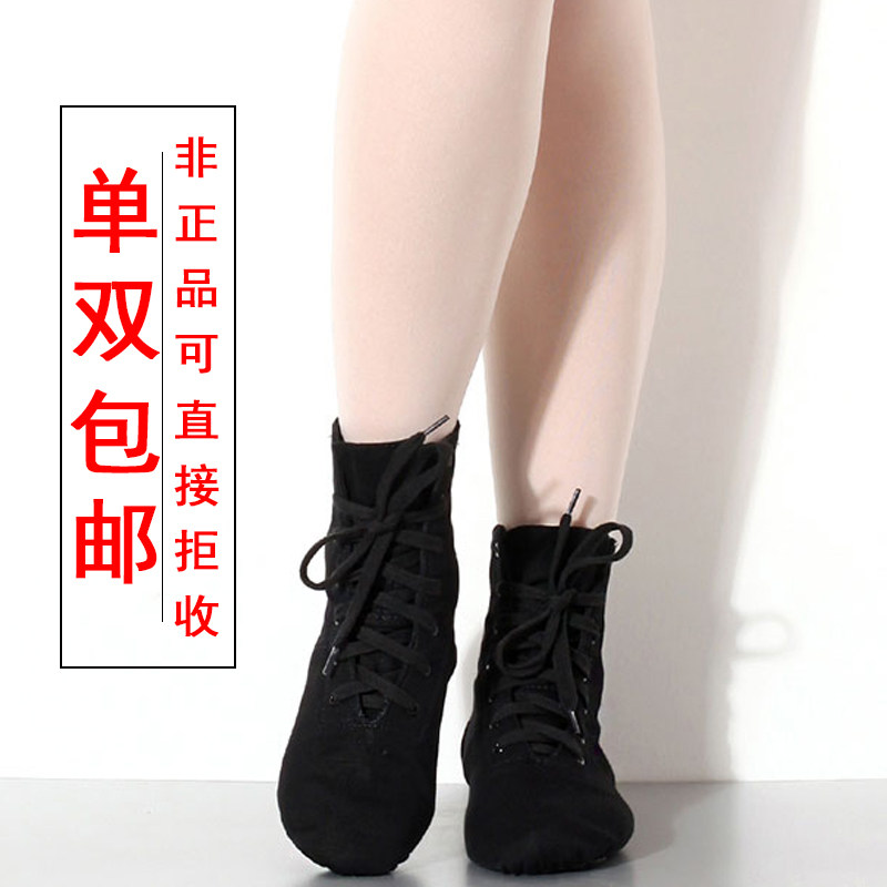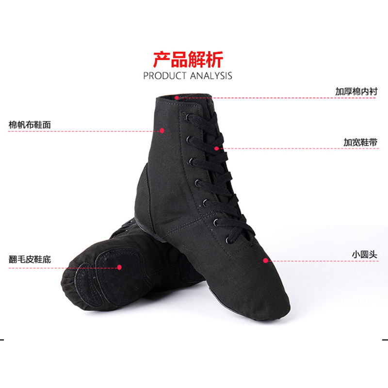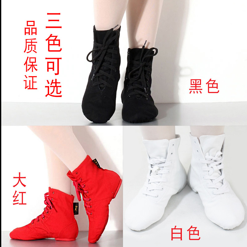 淘宝红舞鞋舞蹈鞋帆布爵士靴男软底练功鞋民族女成人教师专用黑色舞鞋