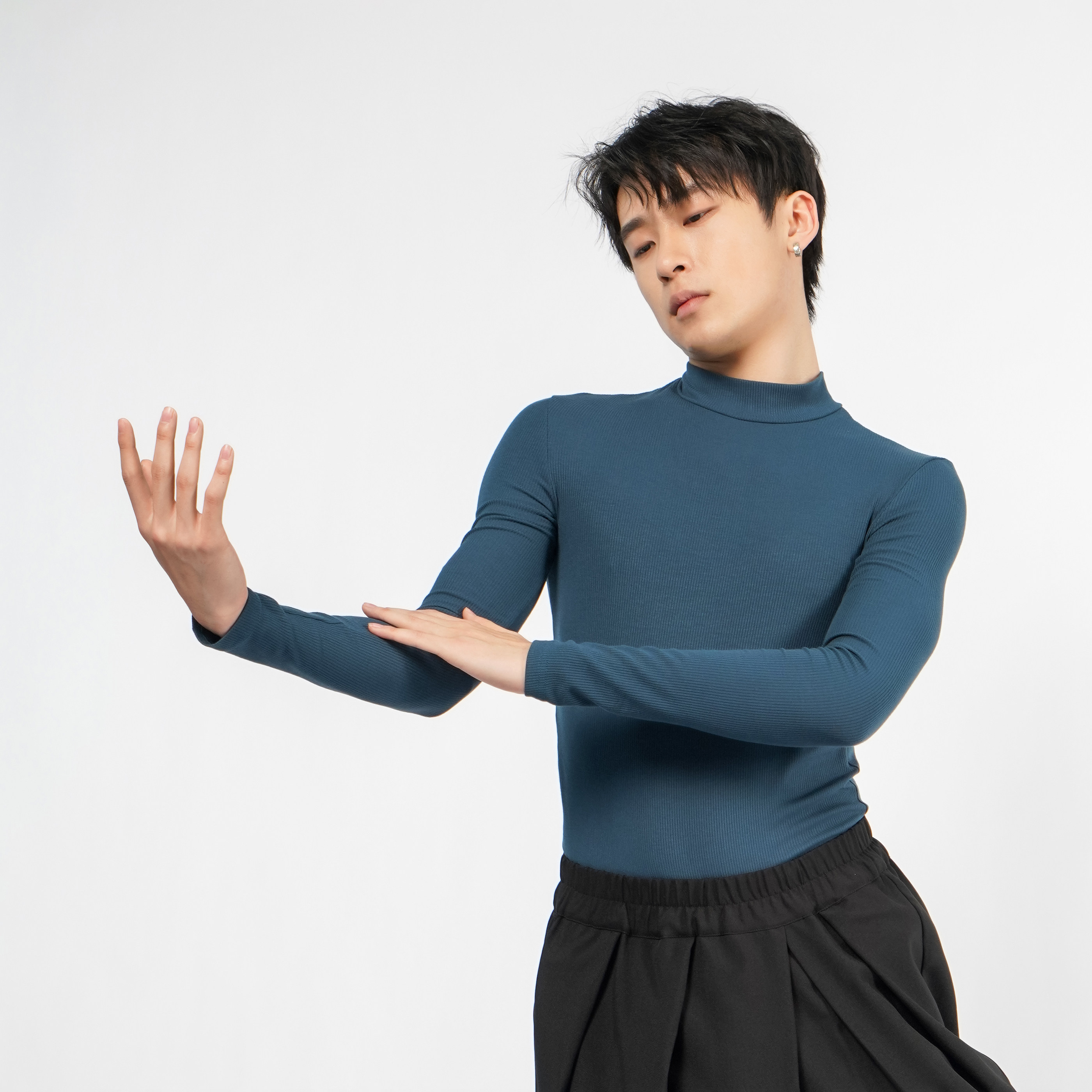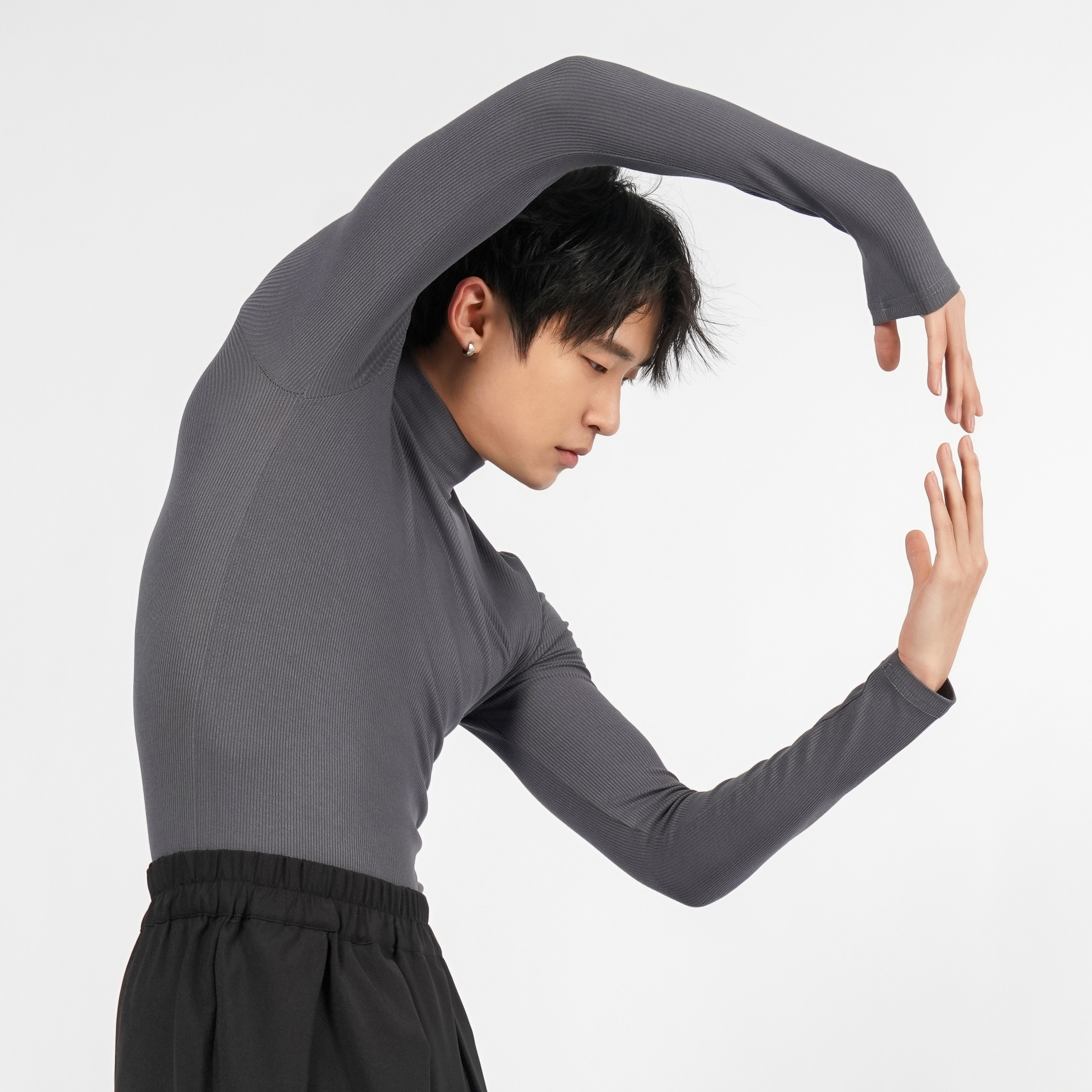 涂一2209M现代舞蹈练功服专为男性艺考生设计,采用高品质弹性面料,贴身舒适、透气排汗,确保高强度训练中的自由伸展。黑色经典配色,简约大气,凸显舞者身形线条。长袖连体设计提供全面支撑,有效保护肌肉,减少运动损伤,适用于现代舞、体操、芭蕾等多种舞蹈训练场景。高弹面料贴合身体曲线,不束缚动作,助力精准完成每一个技术要领。无论是日常练功还是艺考备考,这款练功服都以专业性能与时尚外观,成为舞者信赖的训练伙伴,展现自信与力量之美。