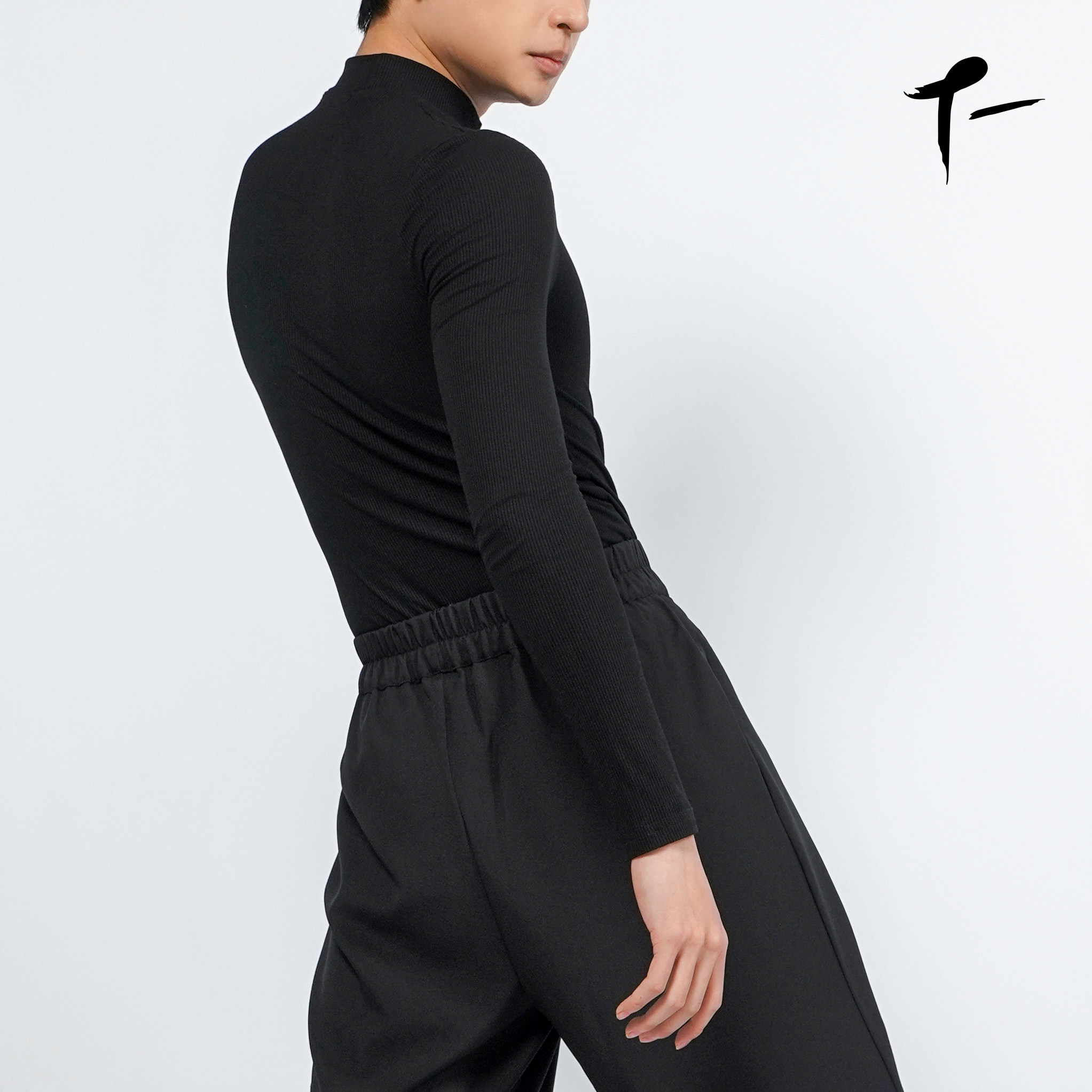 淘宝涂一2209M现代舞蹈练功服男式紧身长袖黑色连体穿搭体操服艺考生