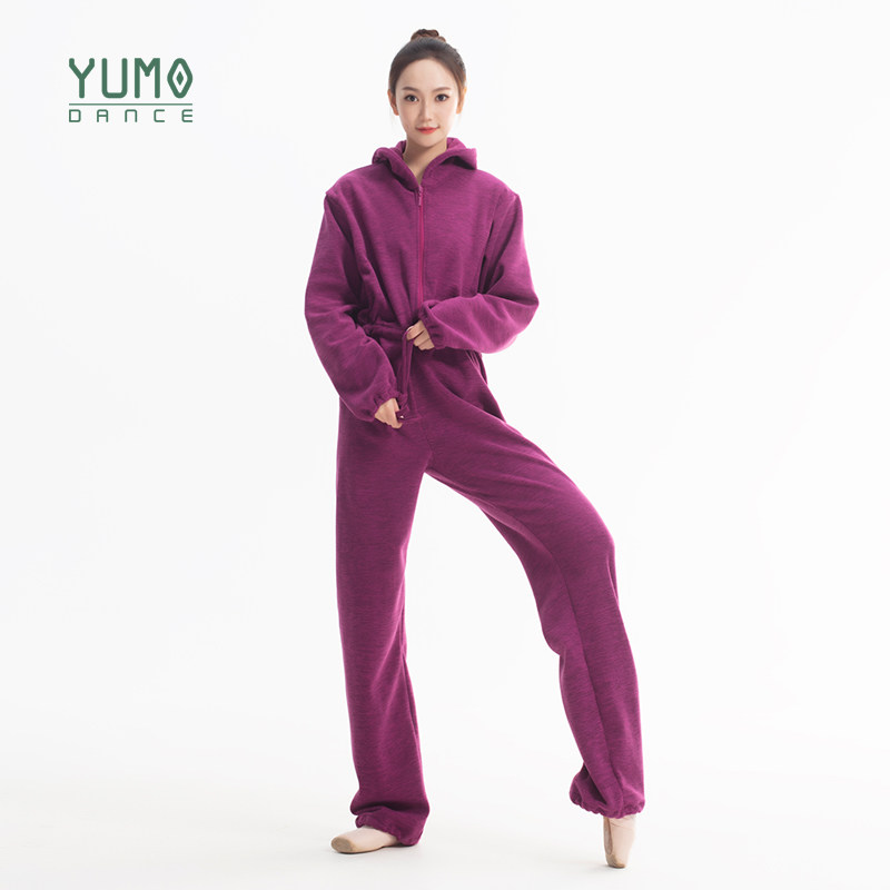 淘宝YUMO舞蹈服冬季保暖绒连体运动套装秋冬芭蕾舞练功服热身训练服