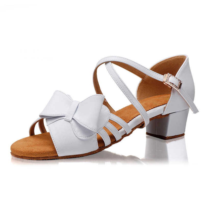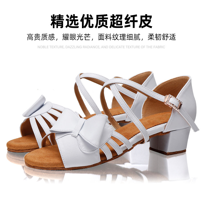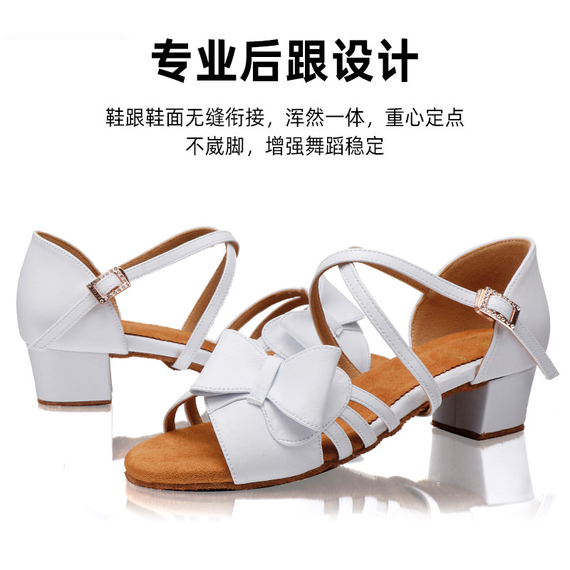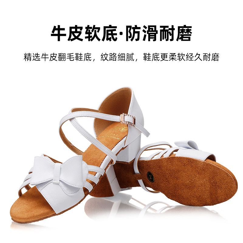 淘宝LDAE拉丁舞鞋儿童女少儿拉丁舞鞋小白鞋练功鞋软底白色皮面室外鞋