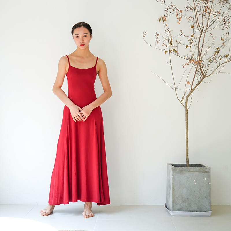 淘宝涂一NT808丨吊带舞蹈长裙现代舞裙子表演演出连体长裙纯色无袖裙
