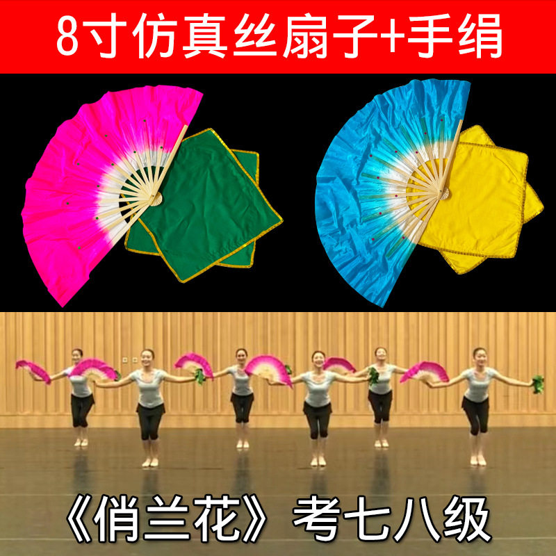 淘宝七级俏兰花舞扇舞协考级手绢八级花鼓灯道具十级茶山放歌仿真丝扇