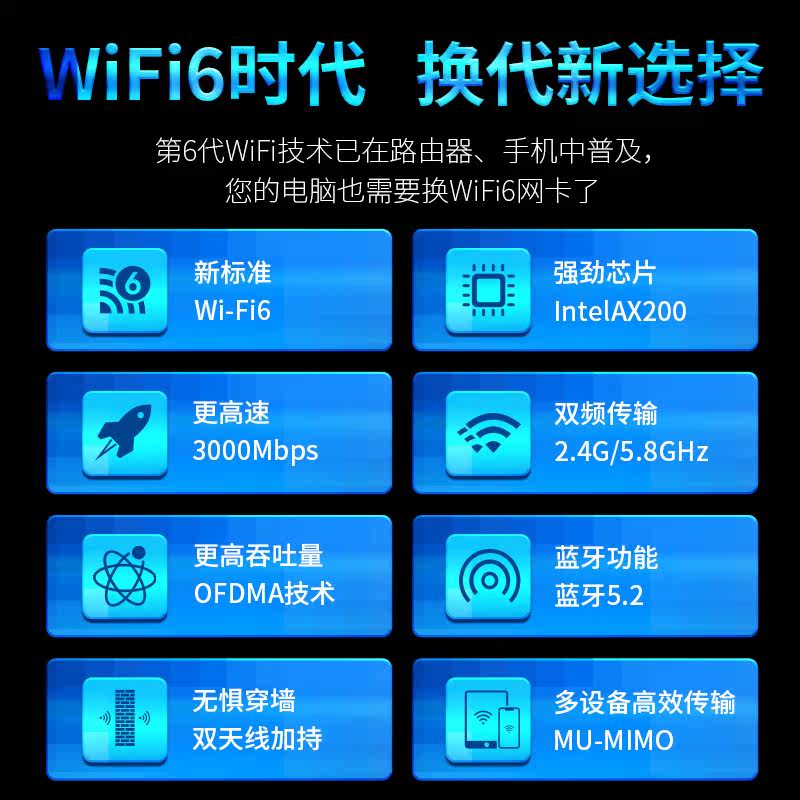 天猫COMFAST AX200/AX210无线网卡台式机内置PCIE接口网卡蓝牙二合一双频千兆电竞游戏DIY主板模块内置wifi接收器