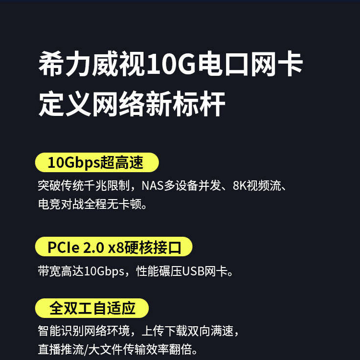 天猫希力威视万兆双电口网卡光口单电单光英特尔X540 82599 PCI-E电竞自适应网卡RJ45网卡台式机服务器群晖nas