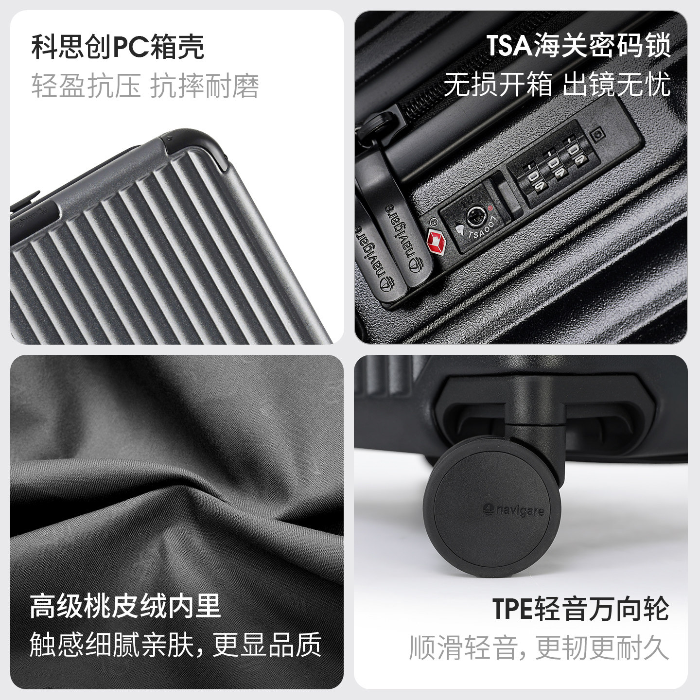 Navigare(纳维凯尔)意大利小帆船行李箱,融合意式设计与航海灵感,打造20寸可登机与24寸拉杆箱两款经典尺寸。箱体采用轻盈坚韧的PC材质,抗冲击性强,表面呈现细腻帆船纹理,彰显独特品味。配备360°静音万向轮,顺滑推行无阻;TSA海关锁保障出行安全;内部科学分区,收纳井然有序。20寸款轻巧便携,轻松登机;24寸款容量充裕,满足长途旅行需求。无论是商务出行还是休闲度假,Navigare行李箱以优雅外观与实用性能,陪伴每一次精彩旅程,诠释意式旅行美学。