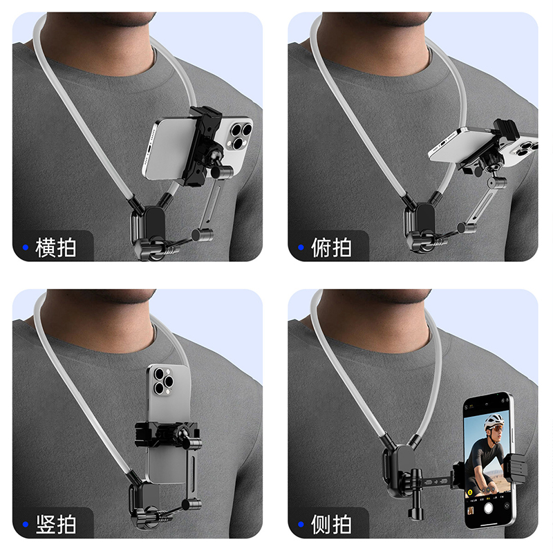 第一人称视角拍摄设备挂脖手机支架磁吸防抖胸前固定脖子vlog拍摄神器骑行钓鱼直播运动相机全景相机通用