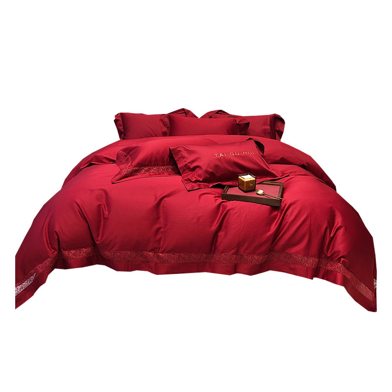 高档婚庆四件套100S长绒棉磨毛被套红色纯棉全棉床单结婚床上用品