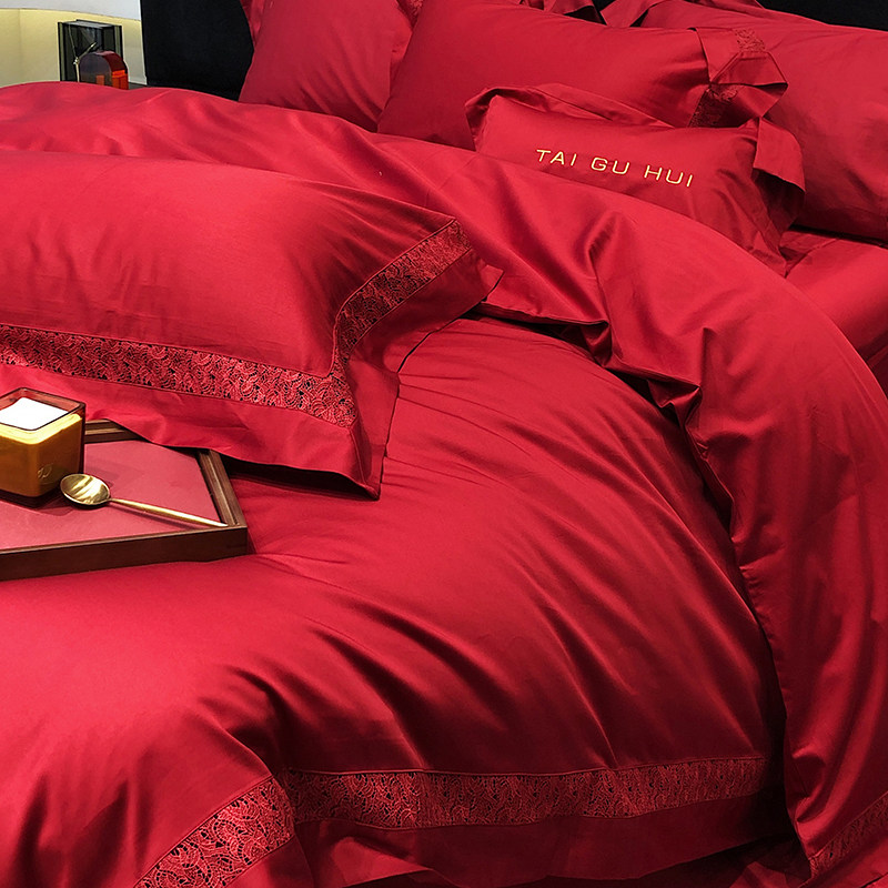 淘宝轻奢高端结婚140支匹马长绒棉四件套100全棉被套床单纯棉婚庆床品