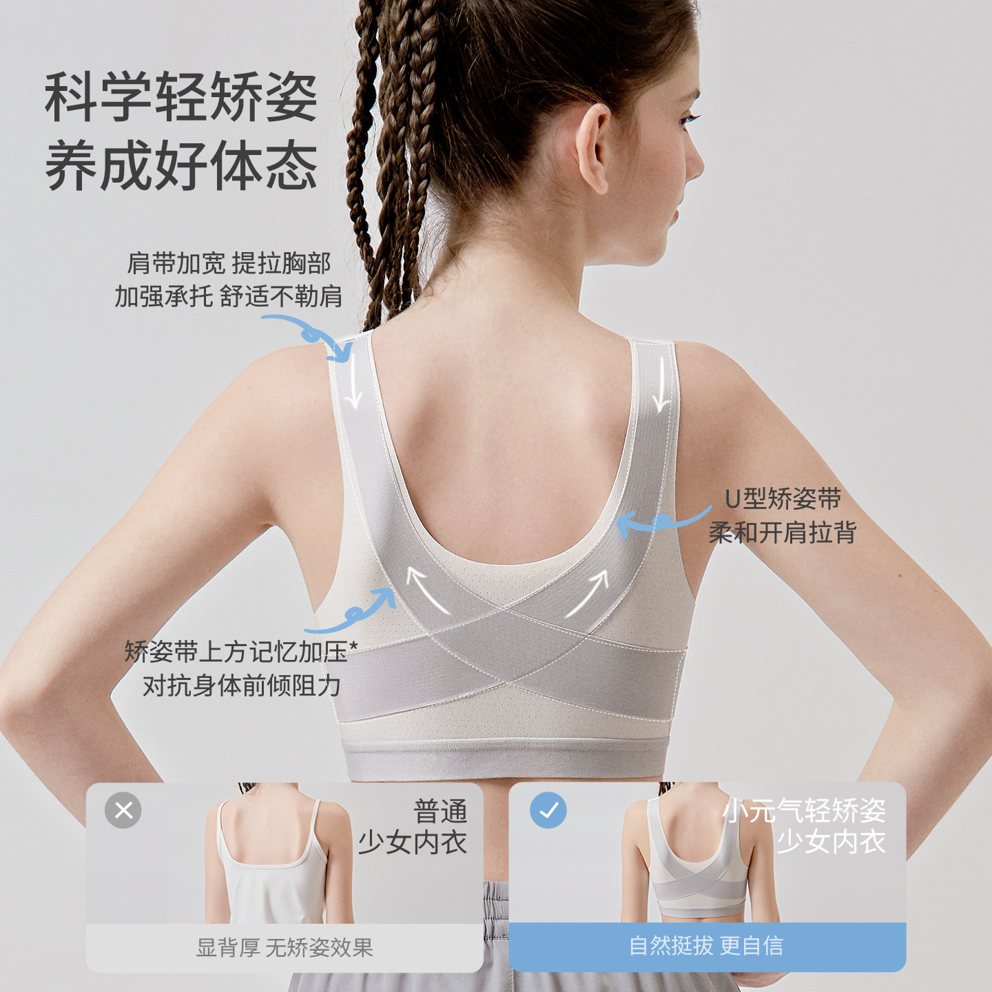 少女内衣文胸学生初中生发育期青春女童孩背心防驼背运动防震矫姿