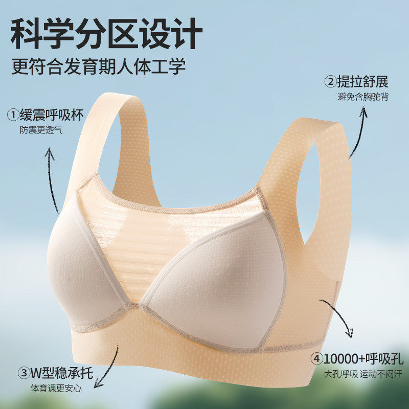 少女内衣大学生裸感文胸高中生发育期聚拢提拉无钢圈舒适无痕胸罩