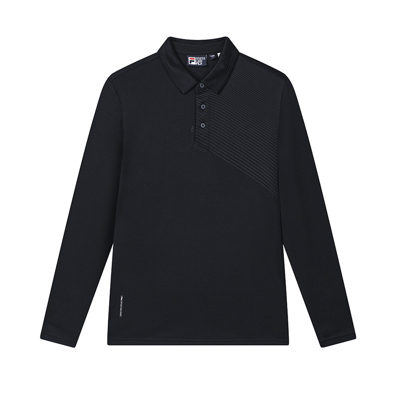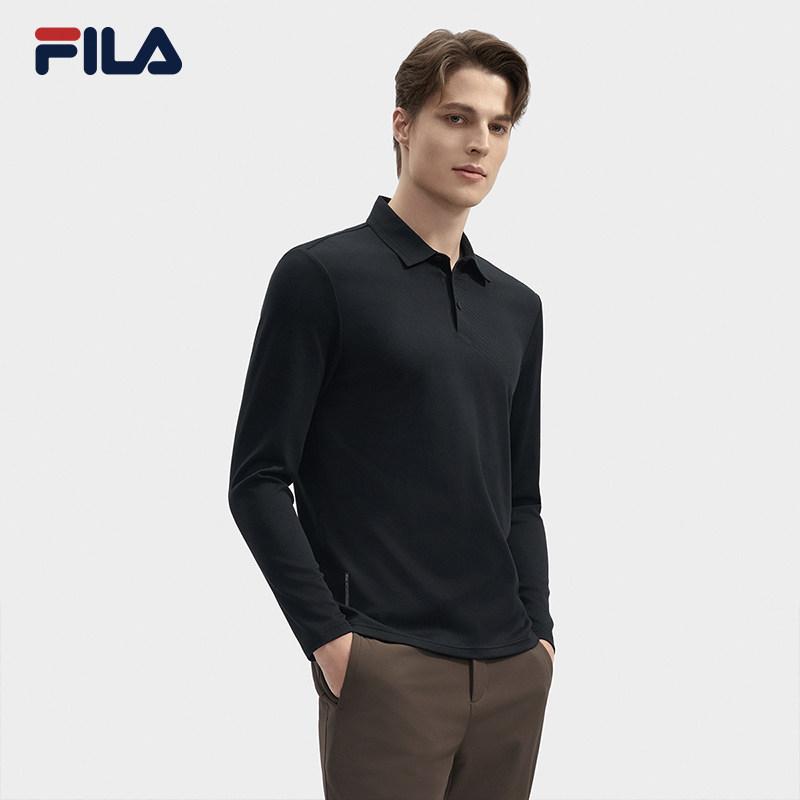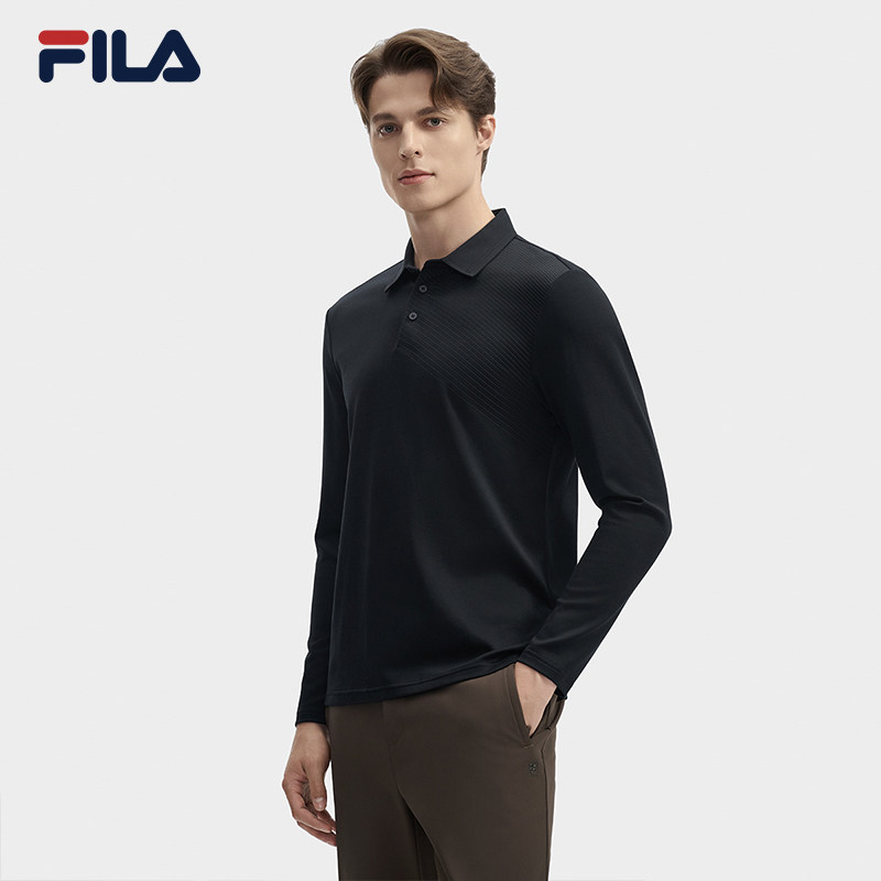 天FILA 斐乐官方男子针织长袖POLO衫2025春季新款网球运动基础上衣